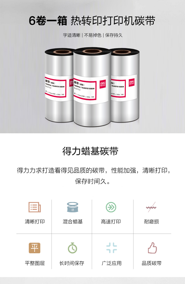 得力81525普通蠟基碳帶(黑)110mm*70m