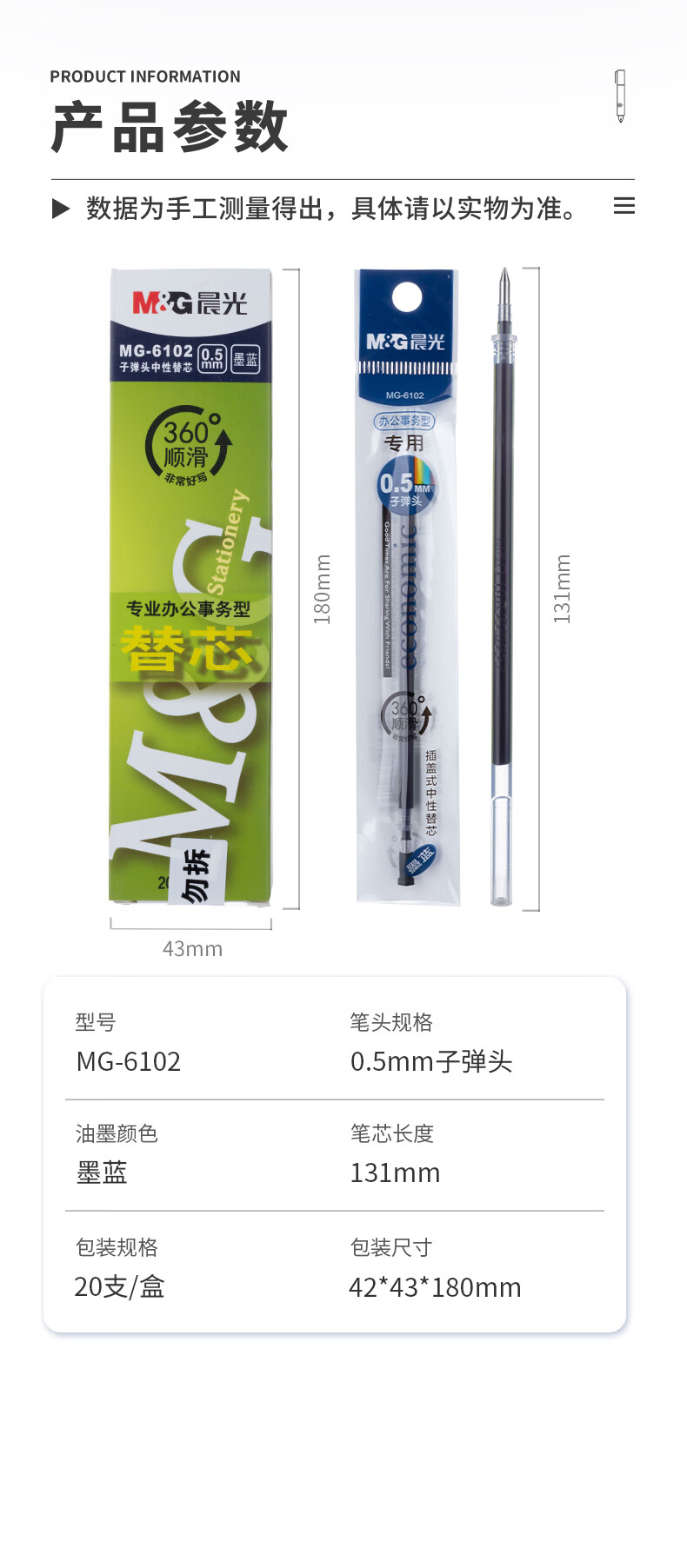 晨光中性筆芯MG6102藍色0.5 20支/盒