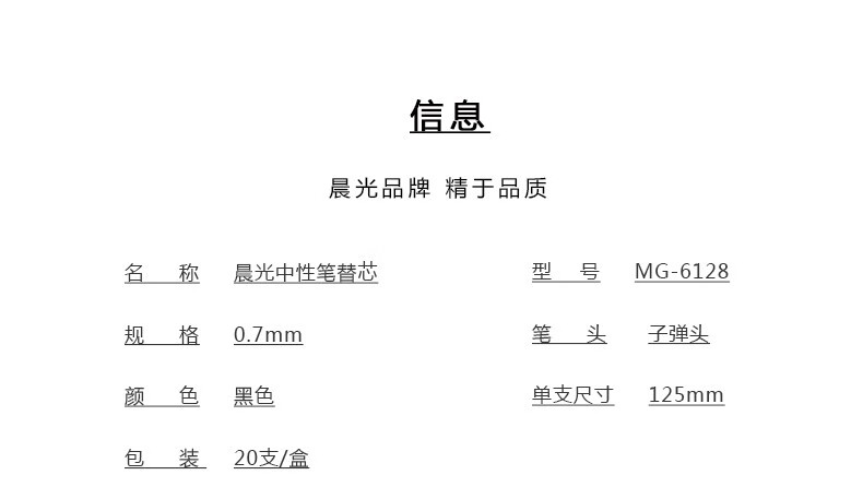 晨光最優(yōu)中性替芯MG6128黑0.7*20