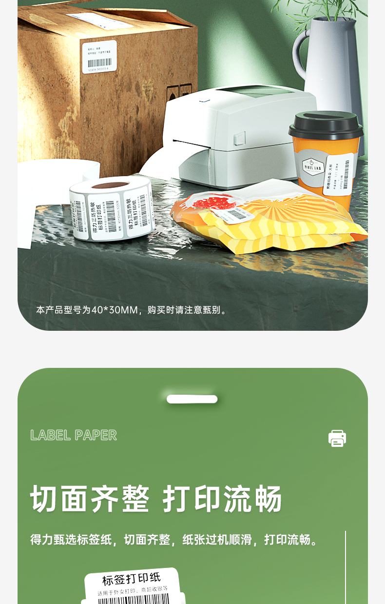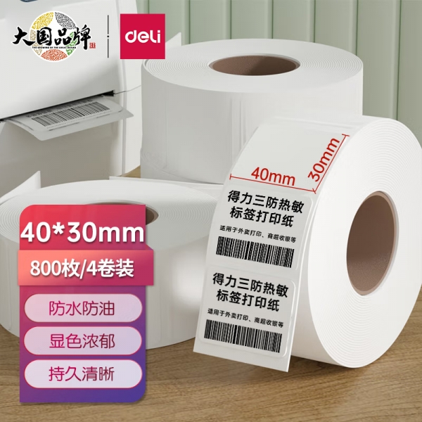 得力12000珊瑚海三防熱敏標簽紙40*30mm*800枚*4卷