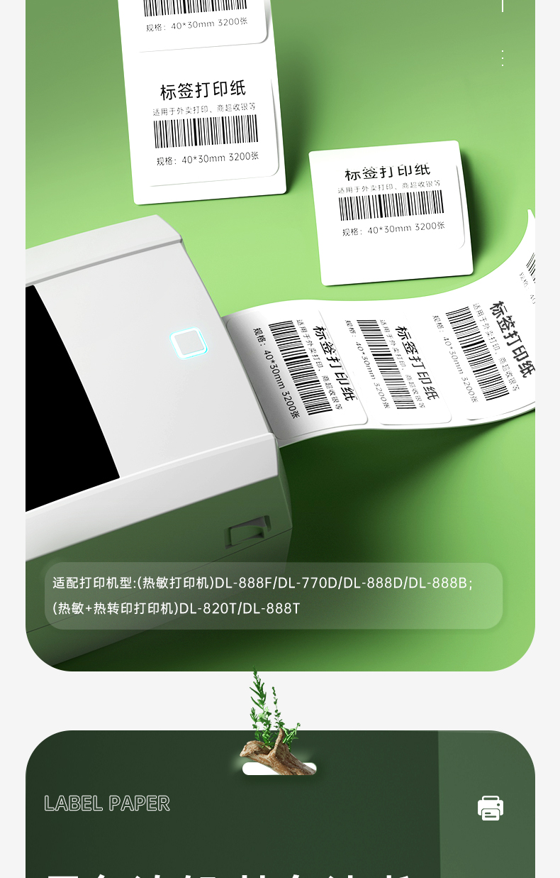 得力12000珊瑚海三防熱敏標簽紙40*30mm-800枚(白)(4卷/筒)