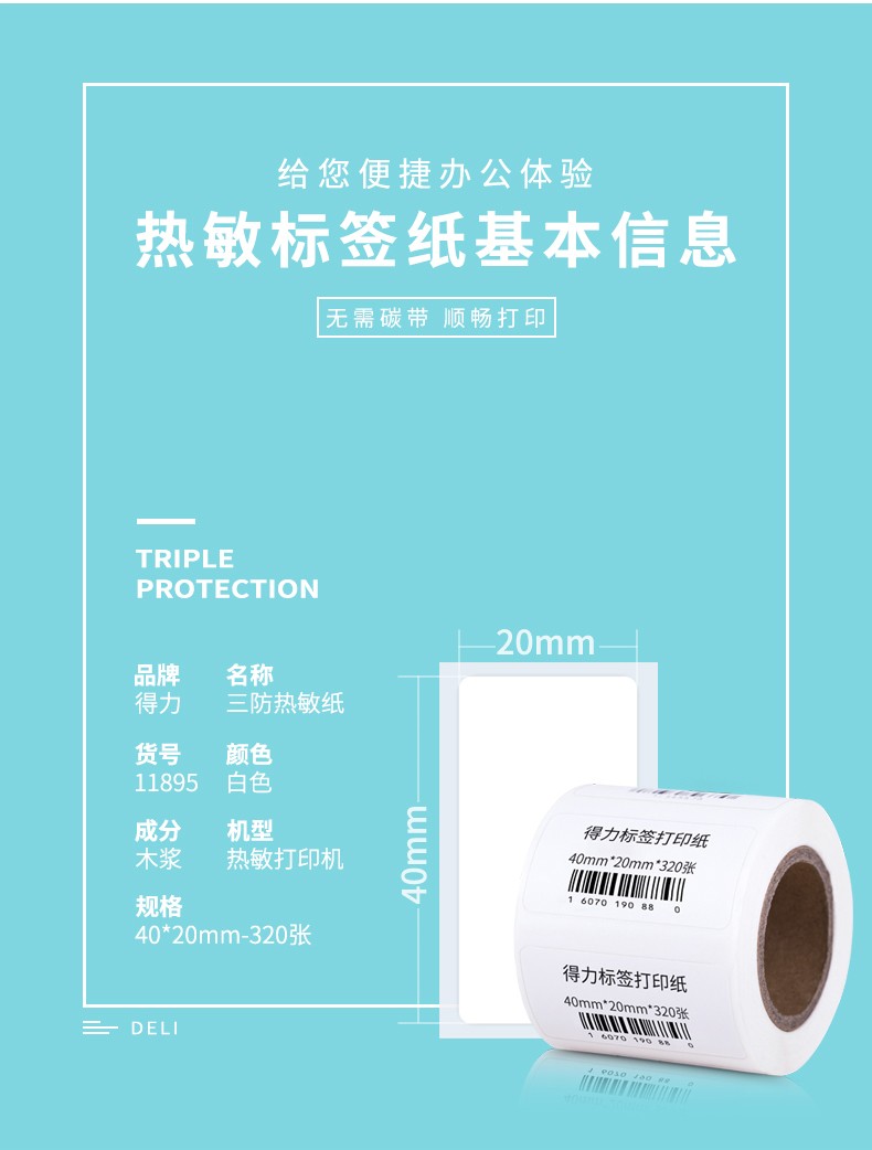 得力12000珊瑚海三防熱敏標簽紙40*30mm*800枚*4卷
