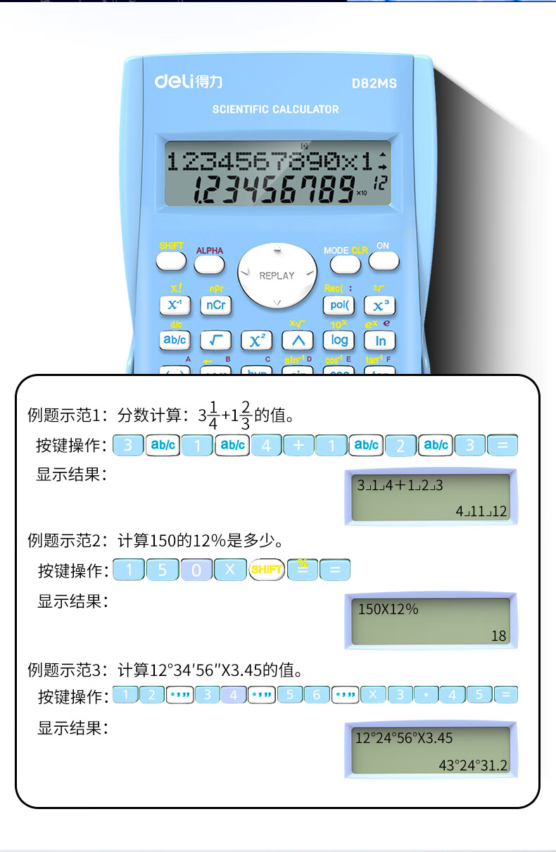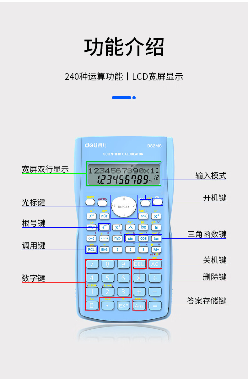得力D82MS函數(shù)計算器(藍)
