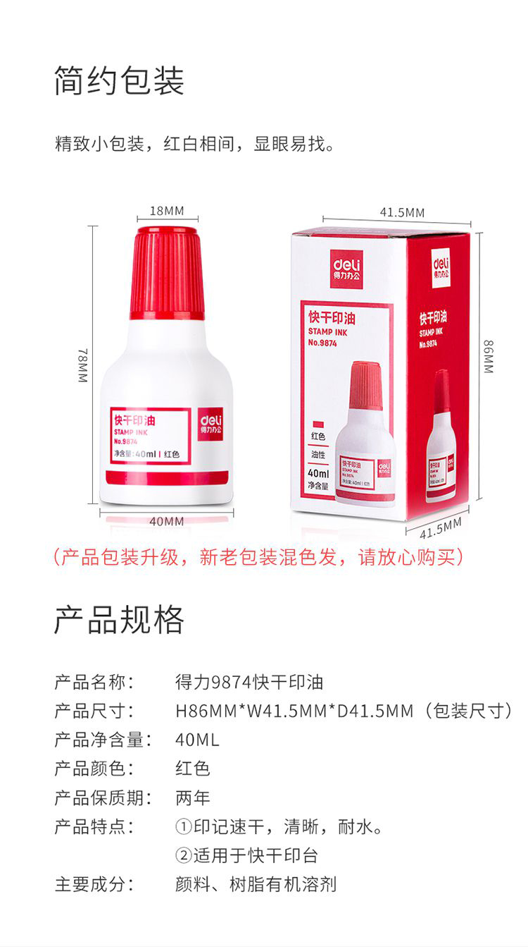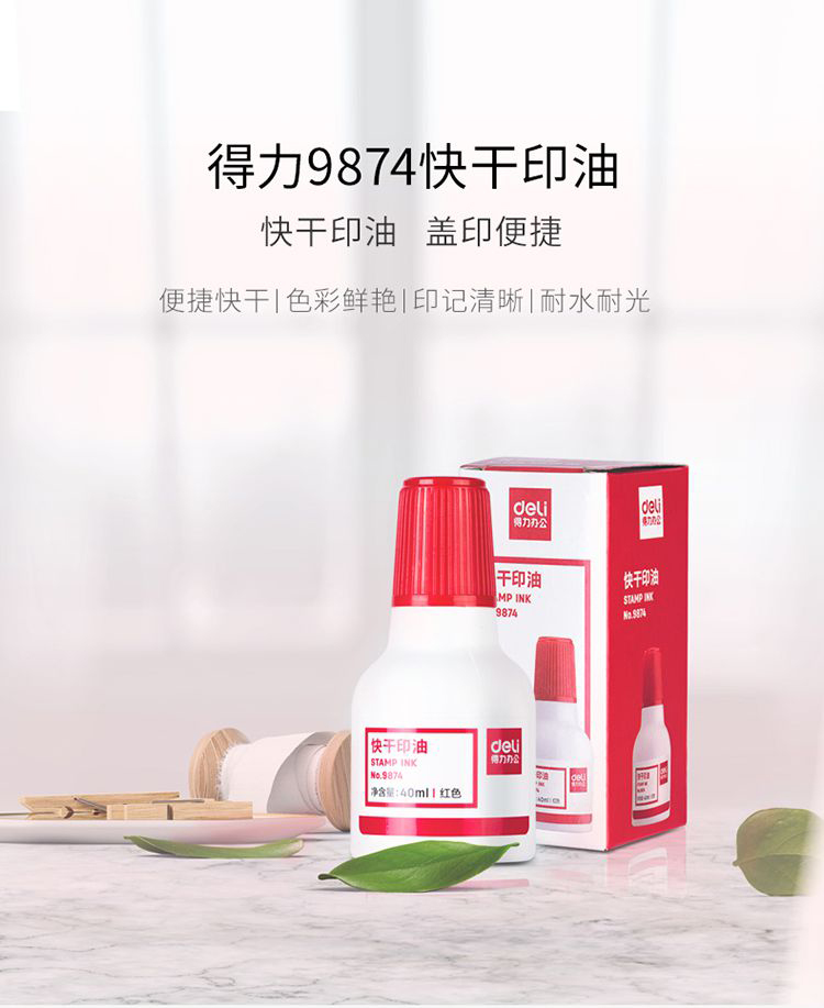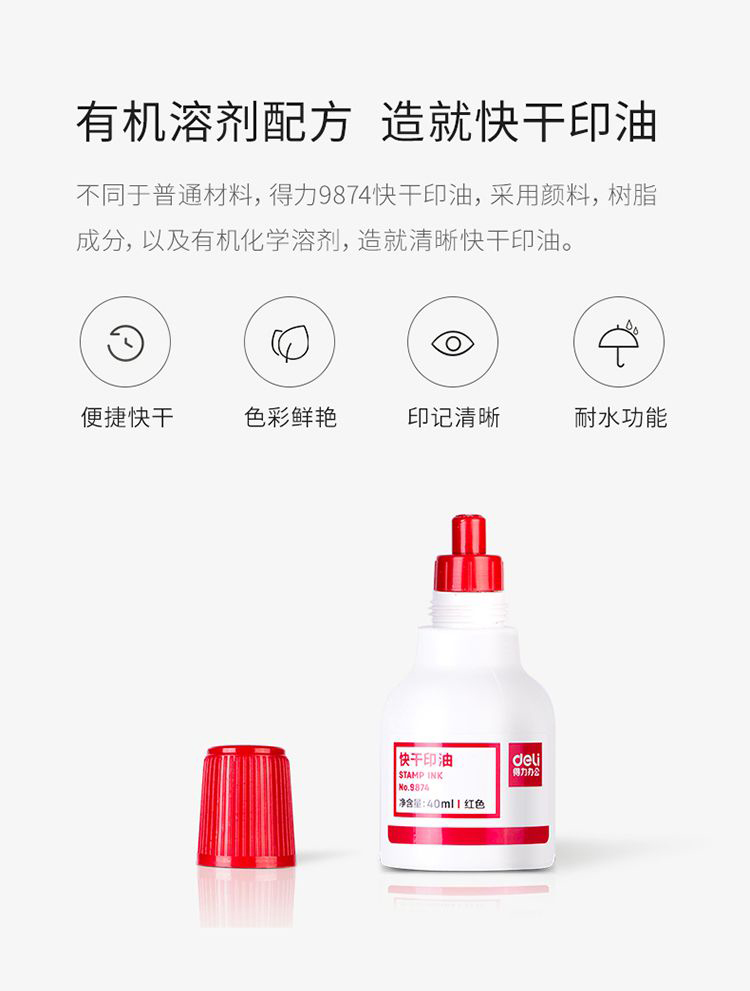 得力9873快干原子印油10ml紅*20