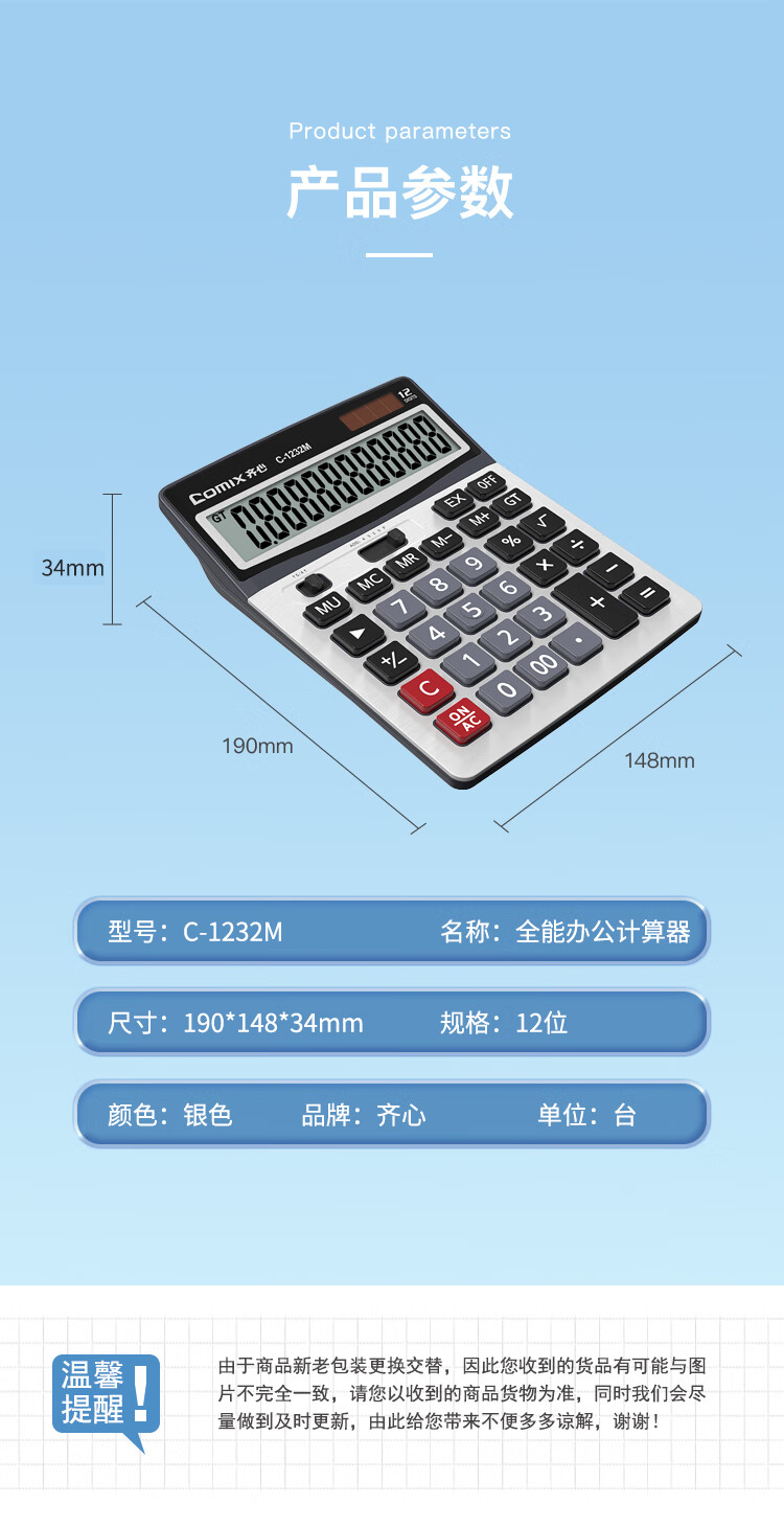 齊心C-1232M計算器大臺全能辦公*5