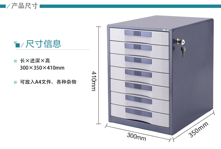 得力9703七層金屬外殼文件柜(閃銀藍)