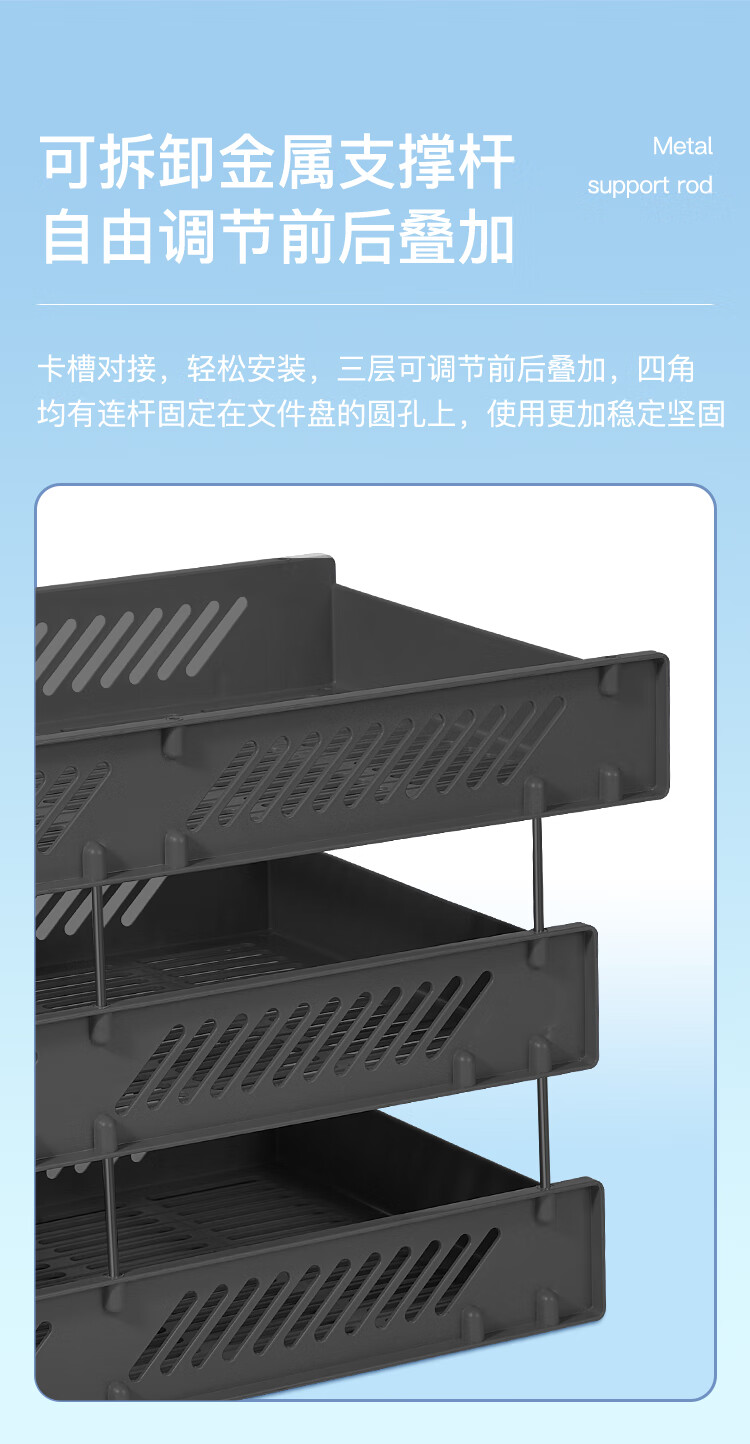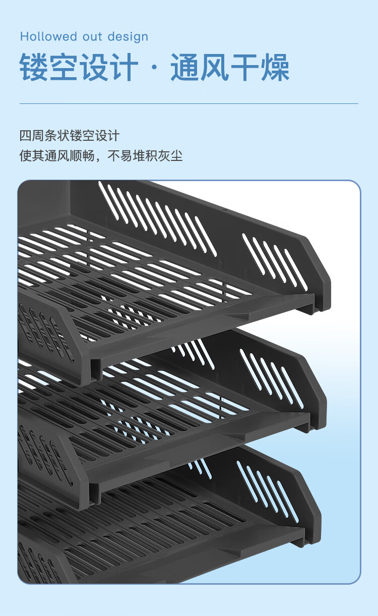 齊心B2163耐用鐵網三層文件盤黑色