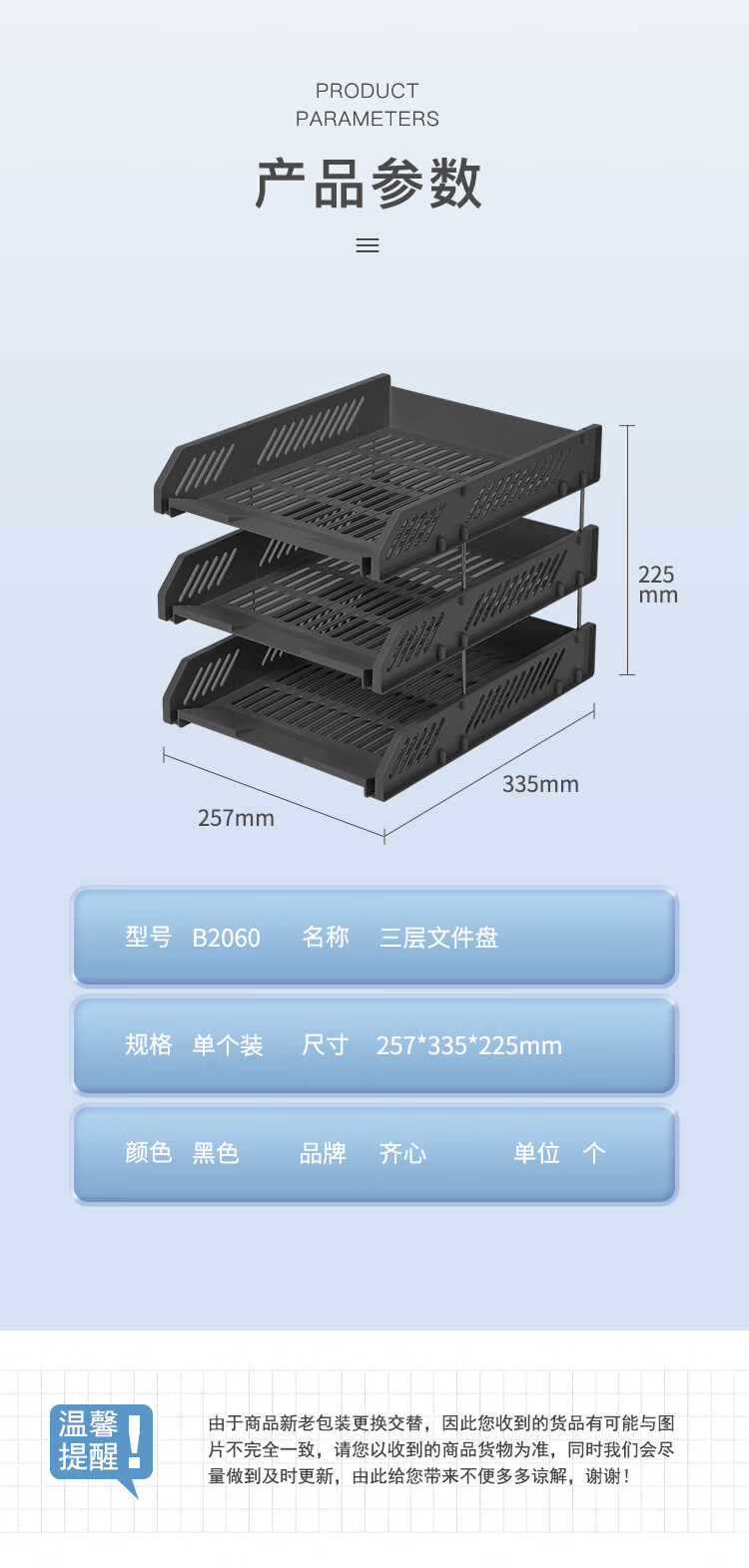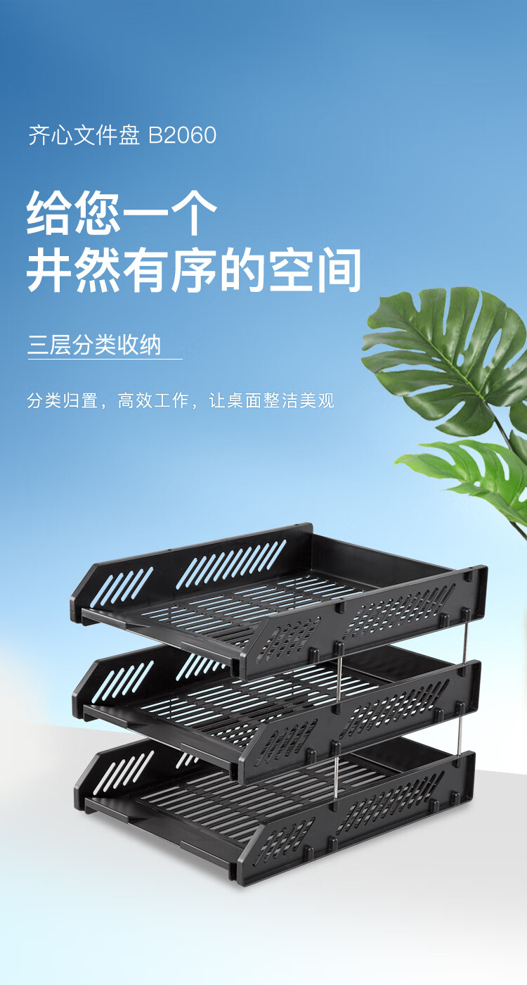 齊心B2060超省錢塑料三層文件盤黑*5