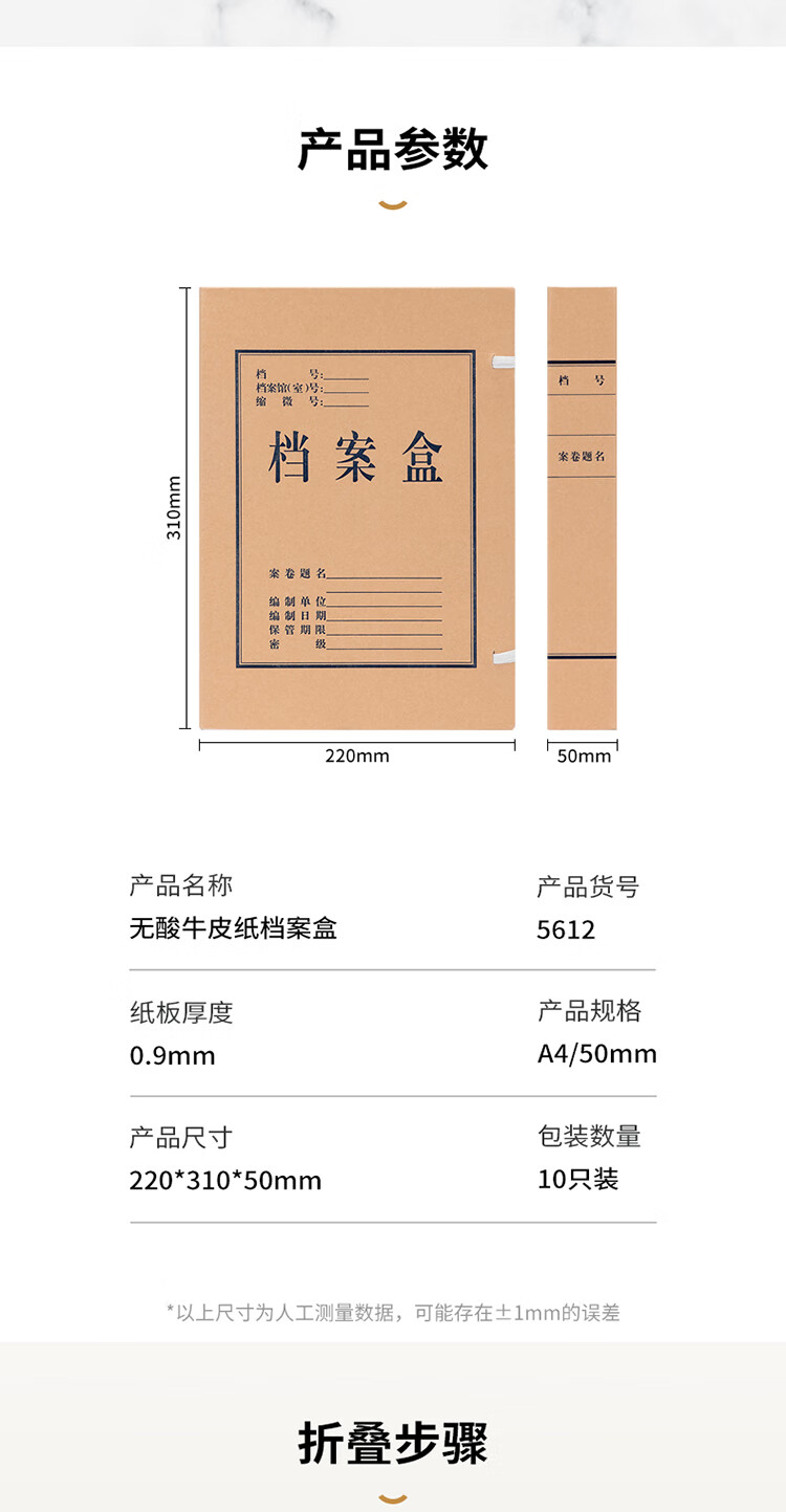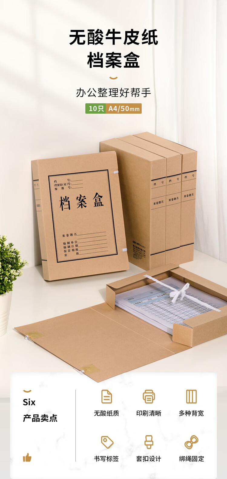 得力5612無酸牛皮紙檔案盒50mm(棕黃)(10個/包)