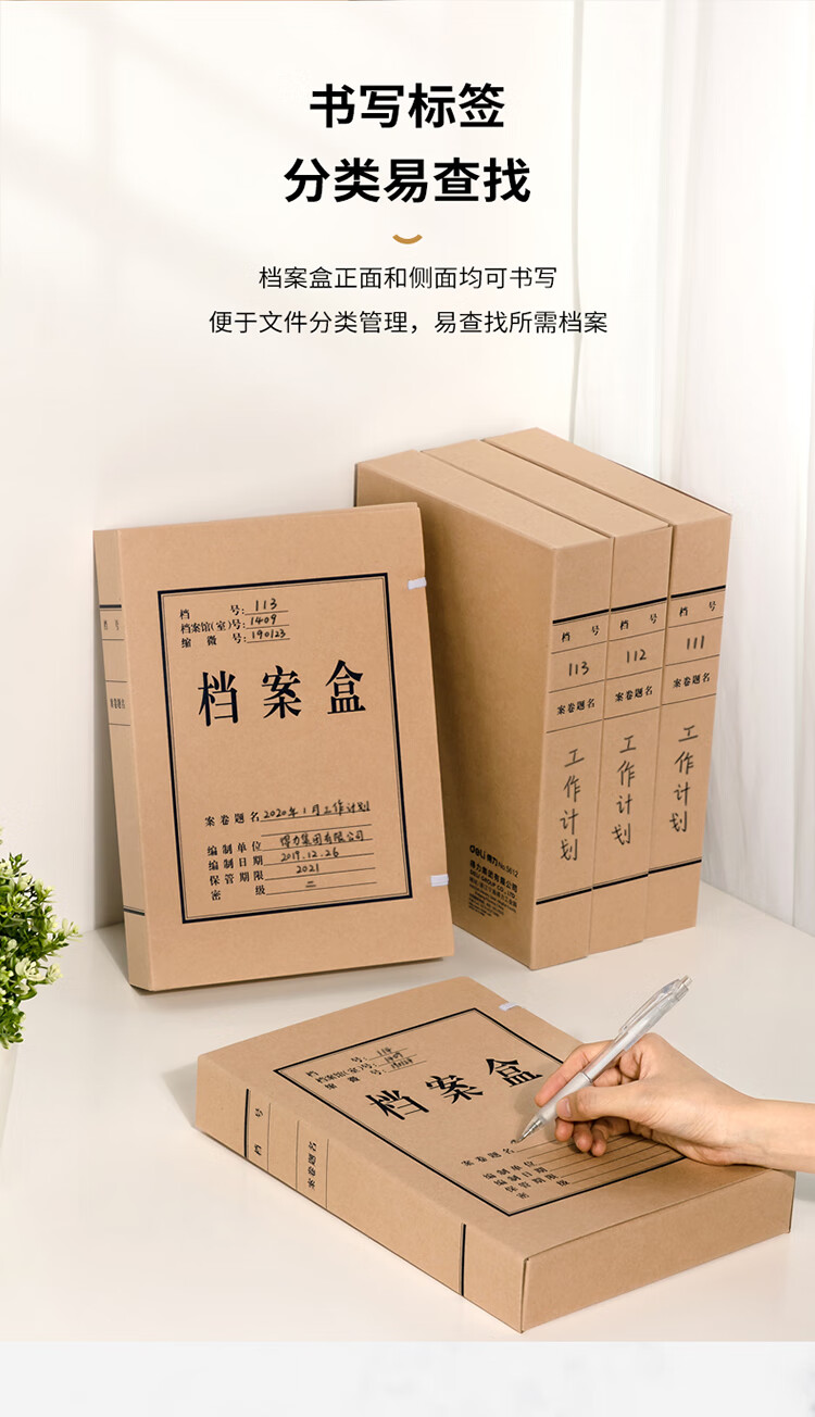 得力5694牛皮紙檔案盒80mm(棕黃)(10個/包)