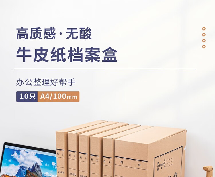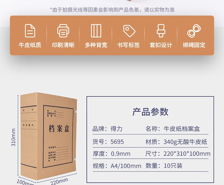 得力5695牛皮紙檔案盒100mm(棕黃)(10個/包)
