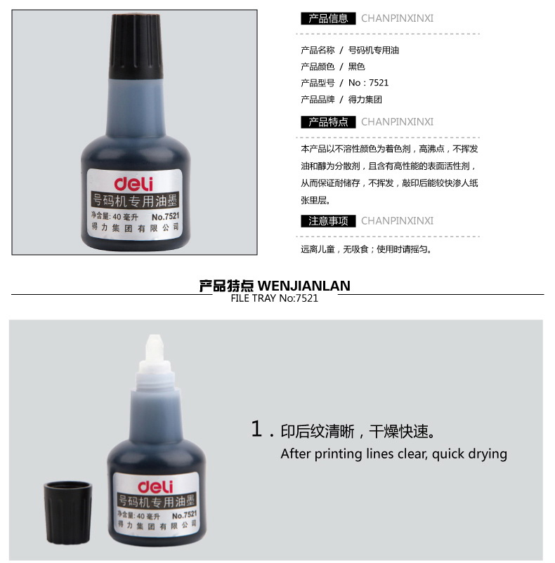 得力7521號(hào)碼機(jī)專用油墨40ml