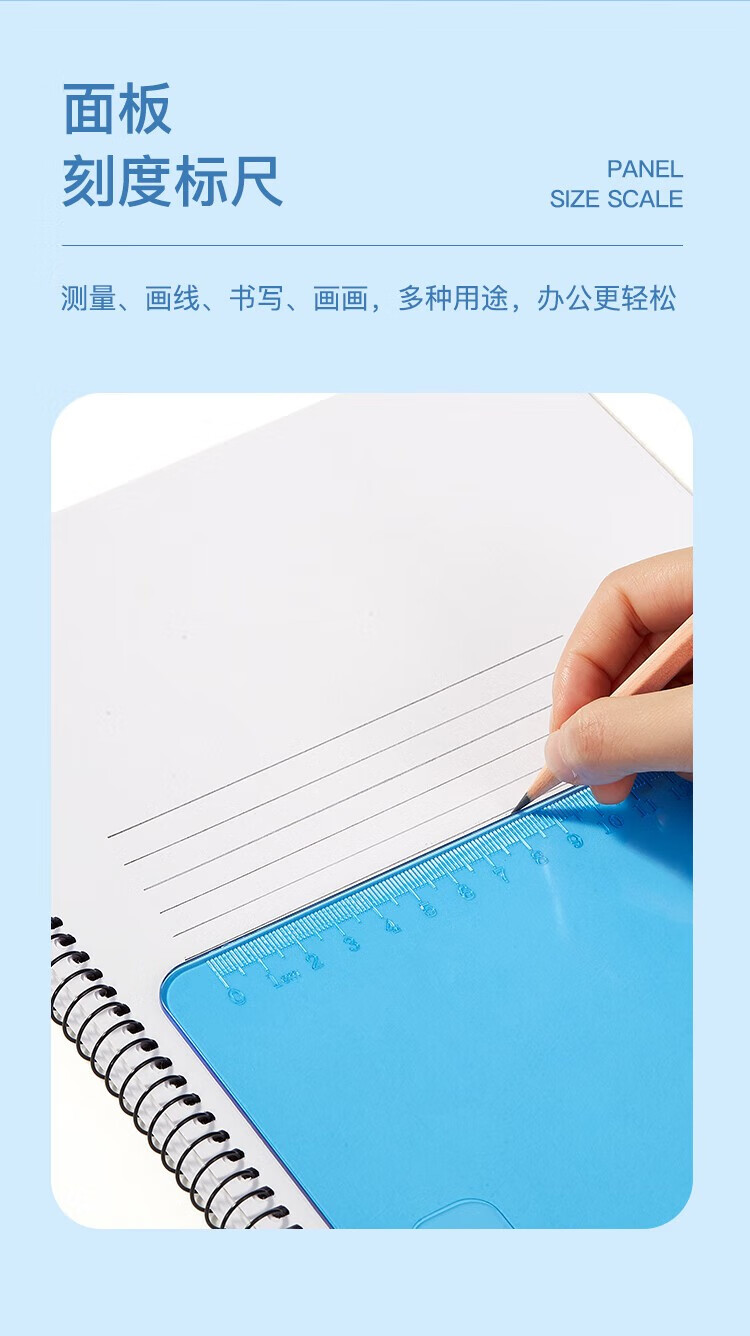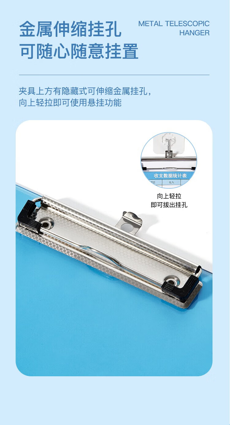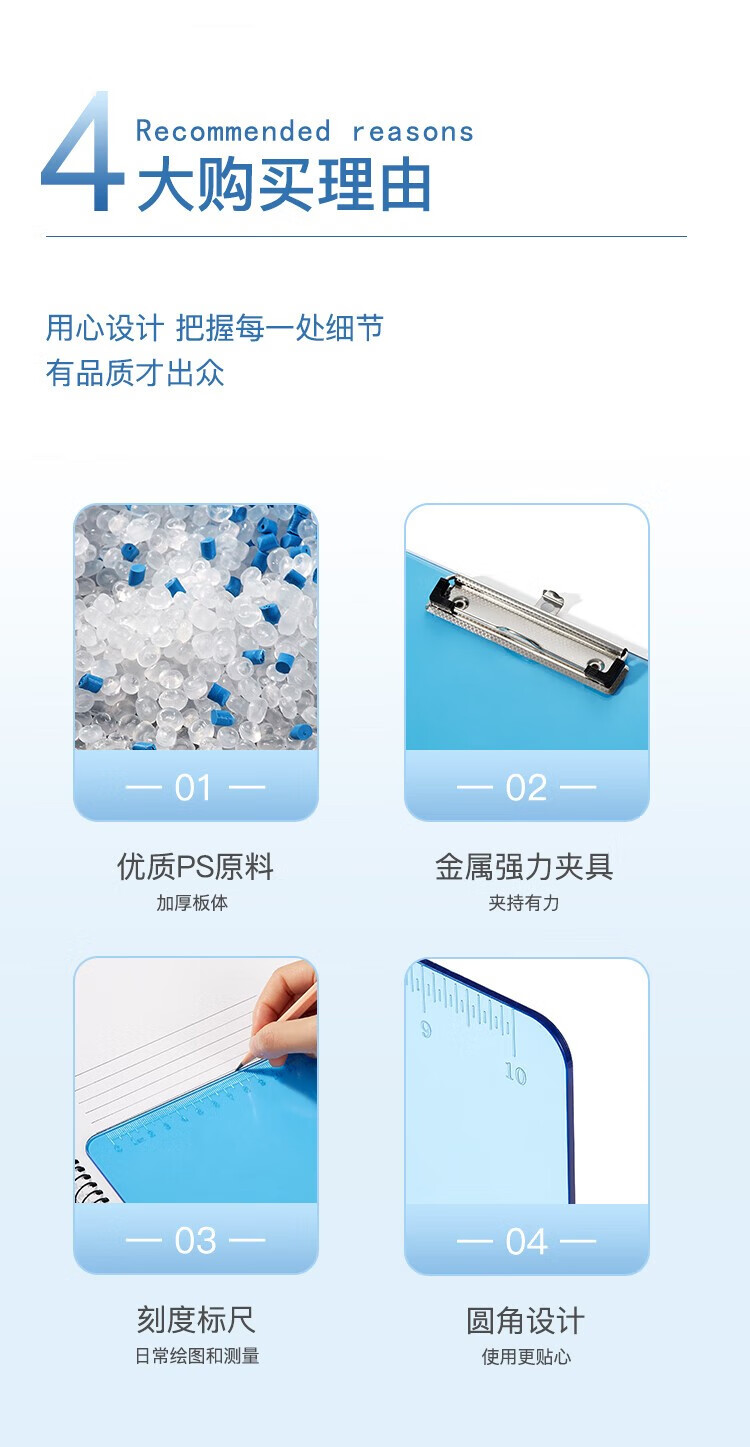 齊心A744藍色書寫板夾 A4豎帶刻度*12