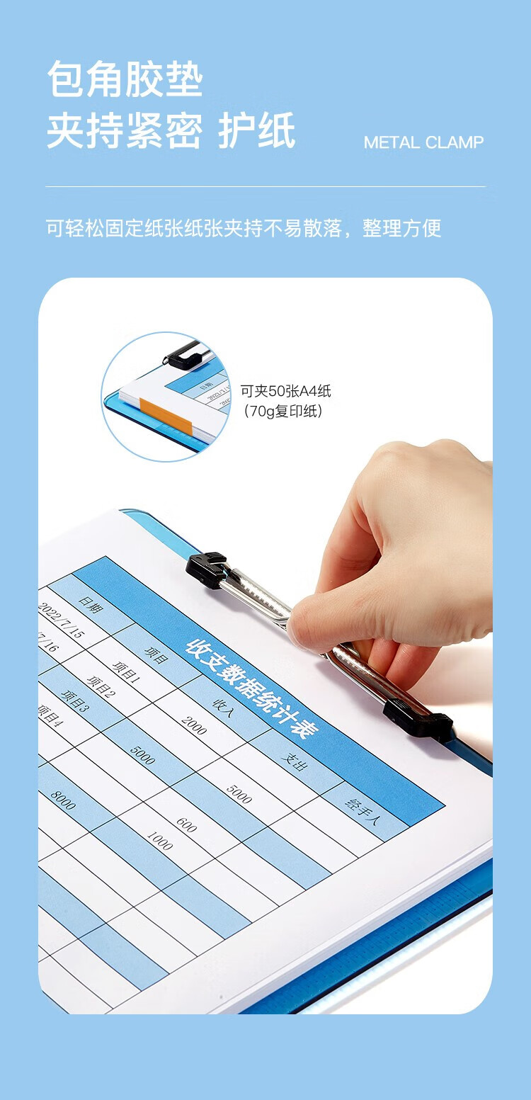 齊心A724實色書寫板夾A4豎藍*10
