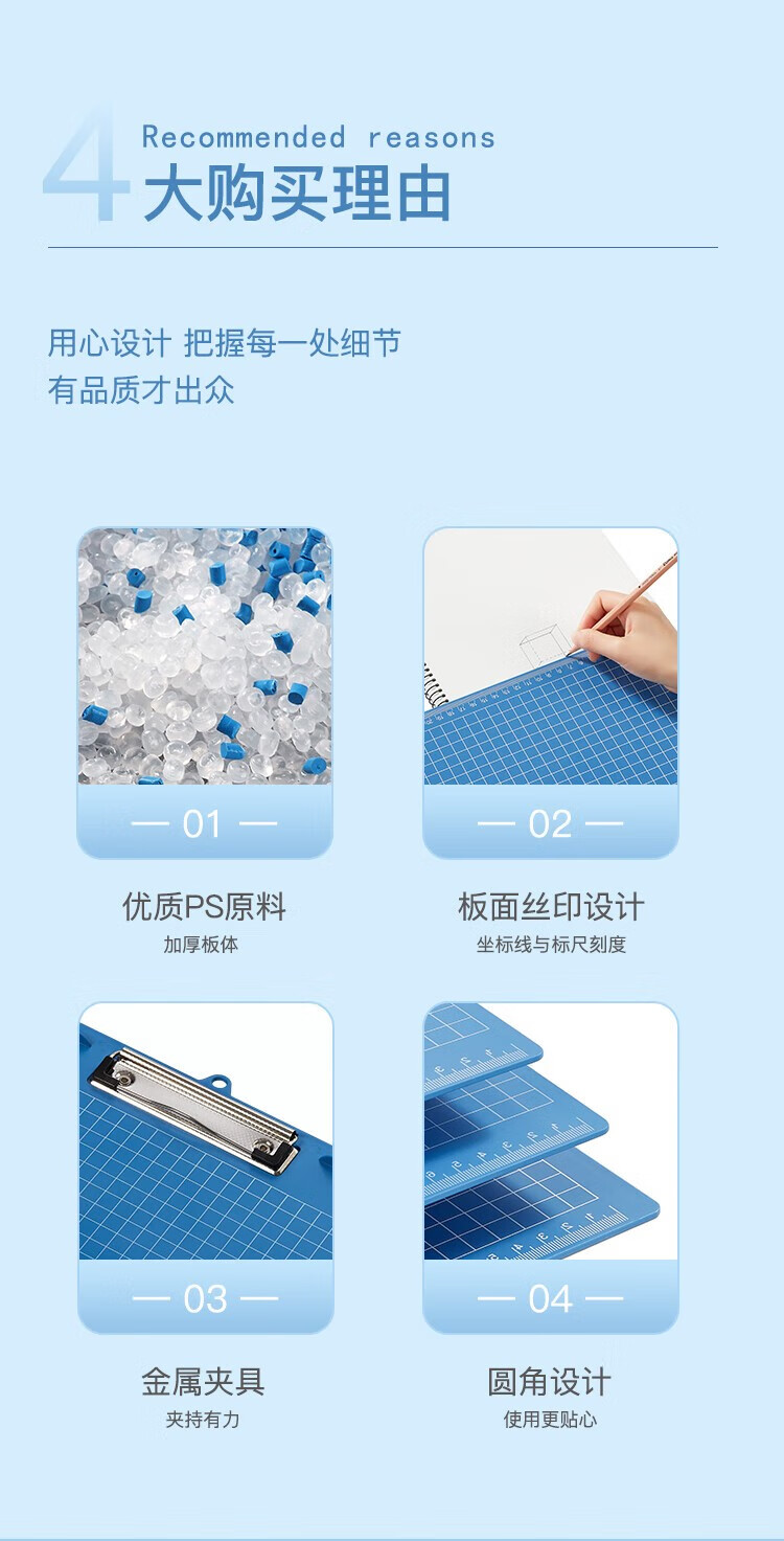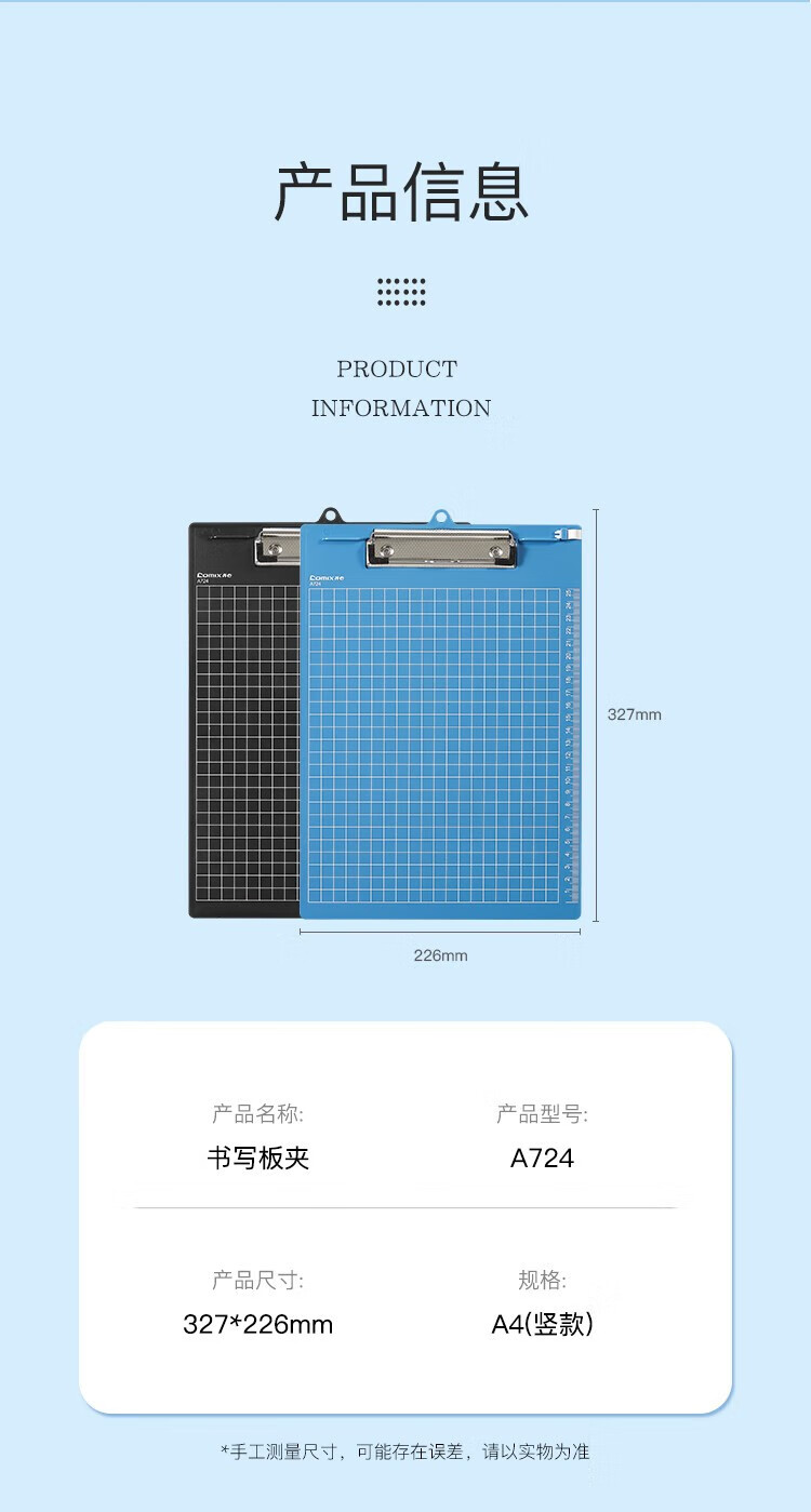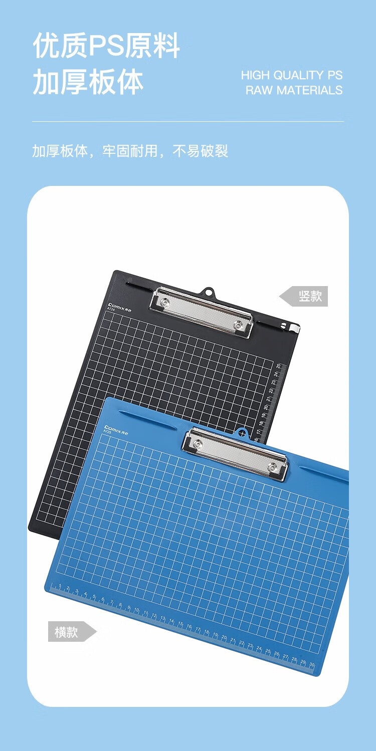齊心A744藍色書寫板夾 A4豎帶刻度*12