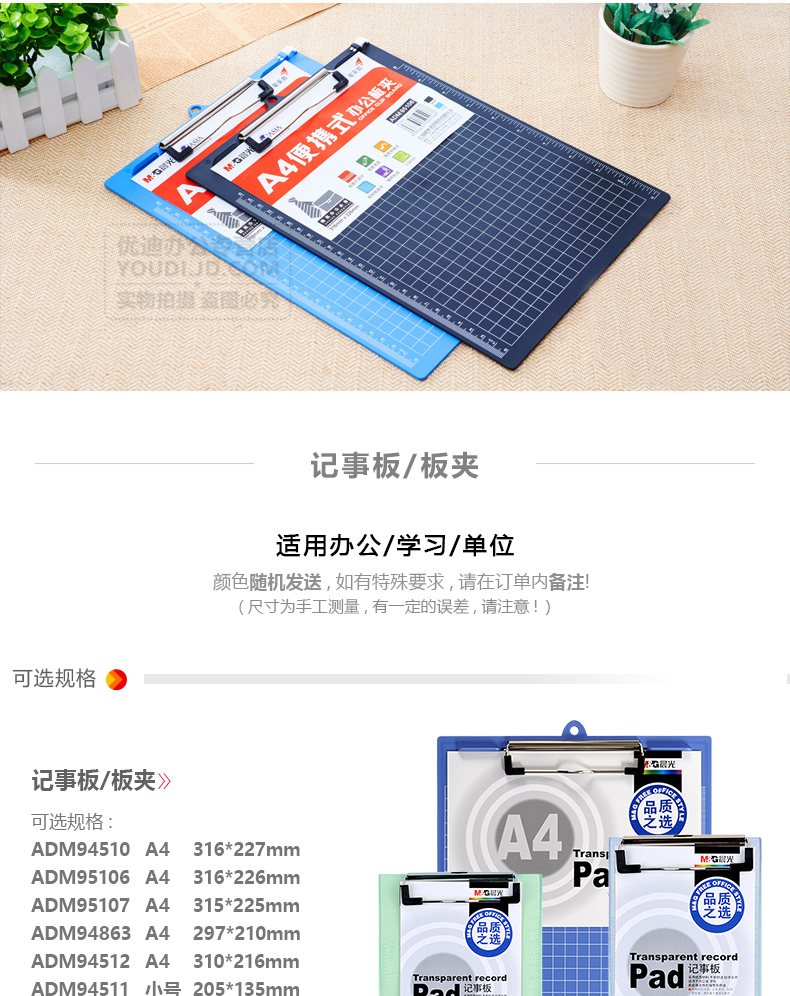 晨光便攜式A4豎式板夾(藍(lán)色)ADM95106
