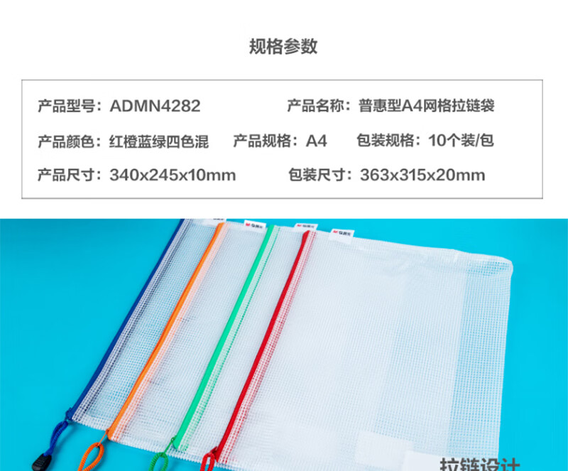 晨光普惠型A4網(wǎng)格拉鏈袋ADMN4282*10