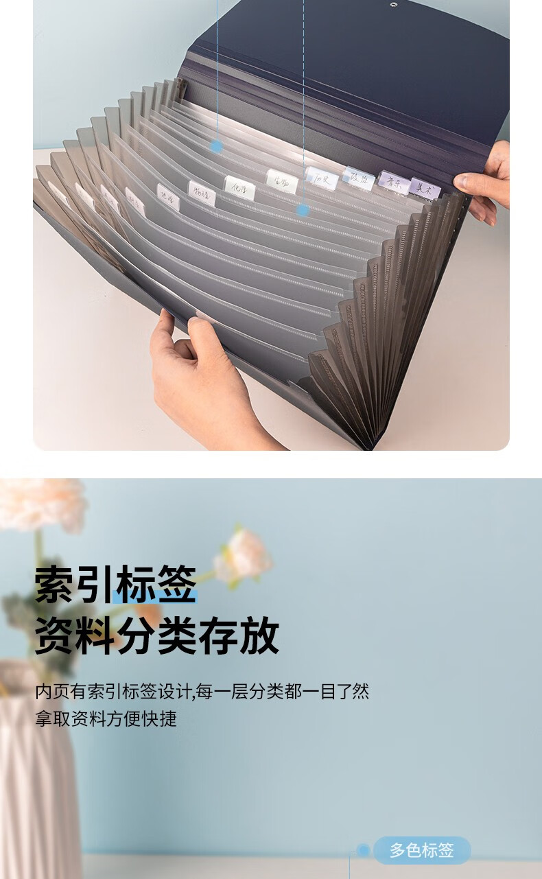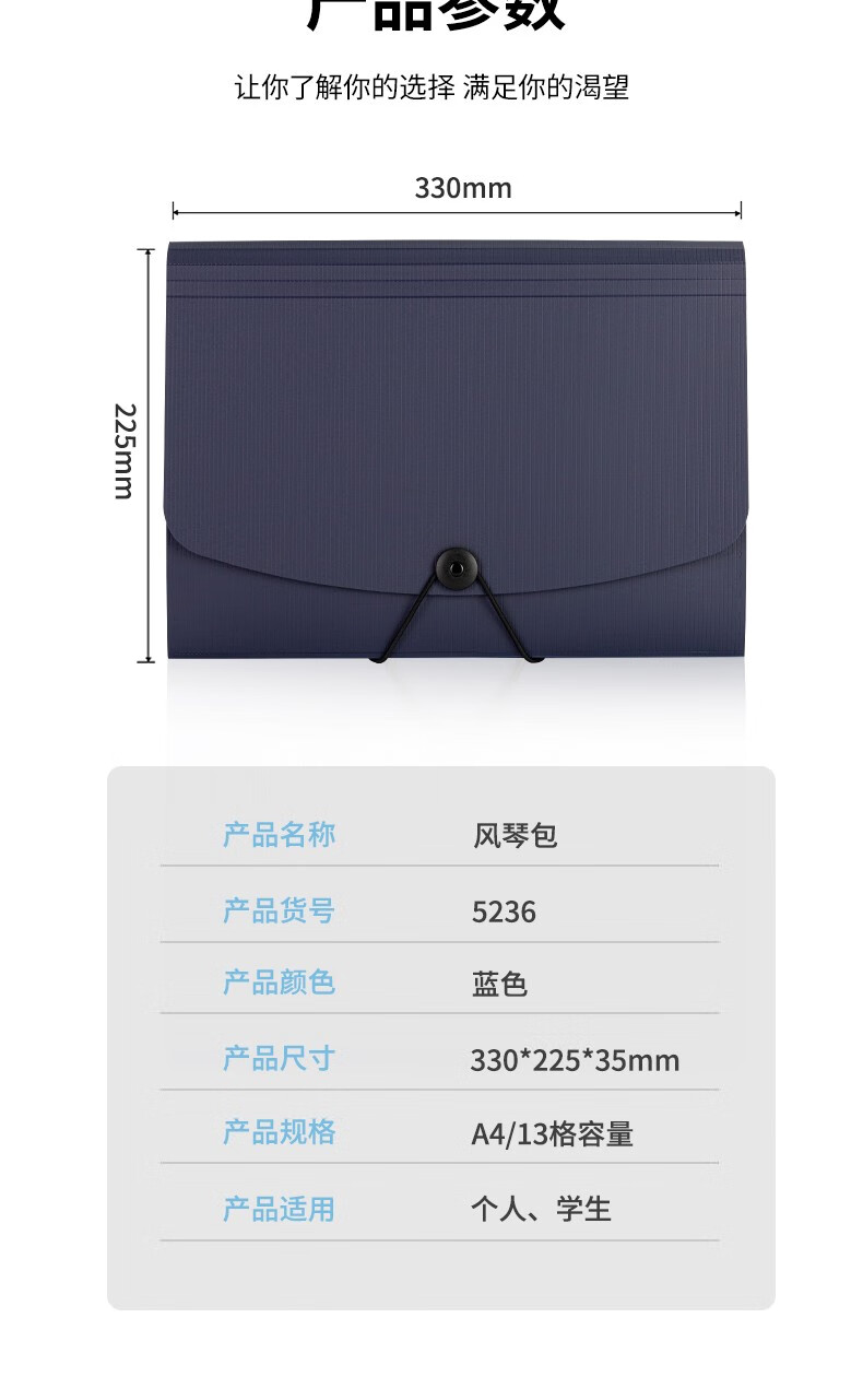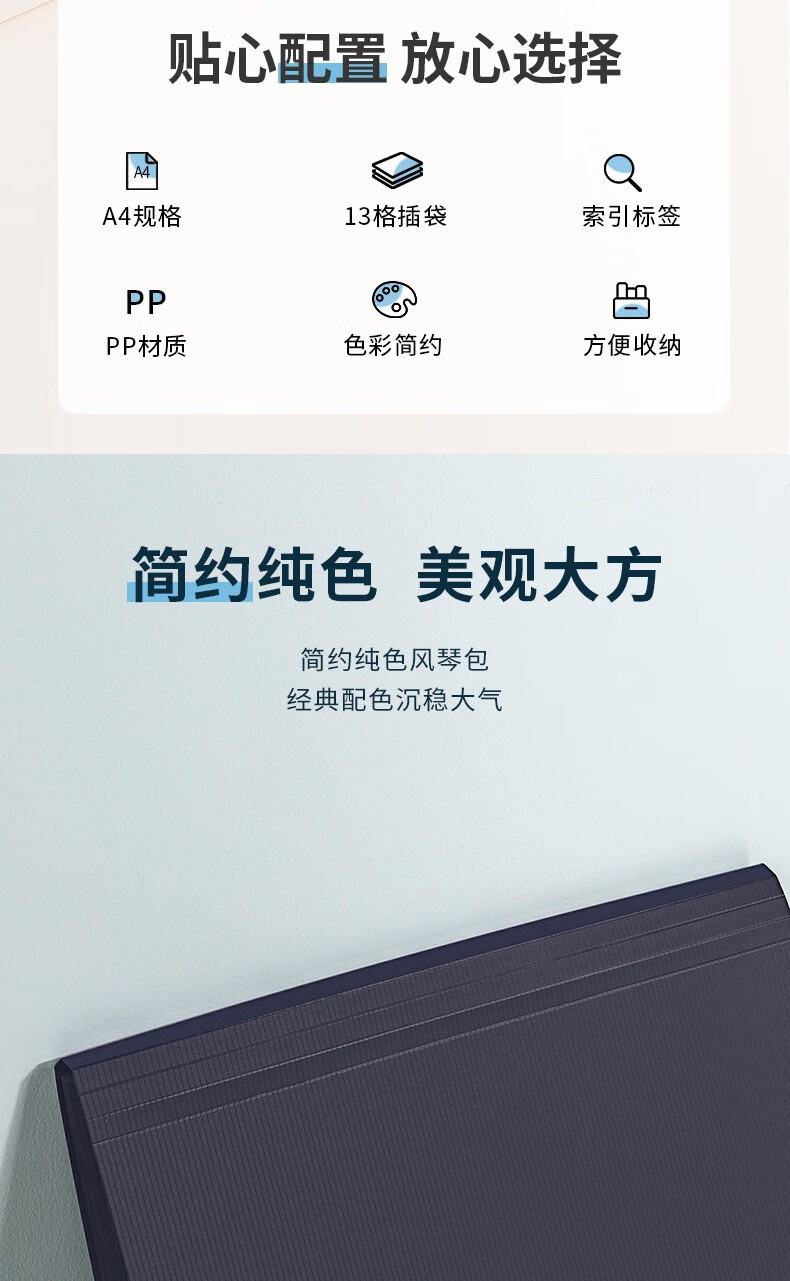 得力63951立式風琴包13格A4文件夾橫式(深藍)