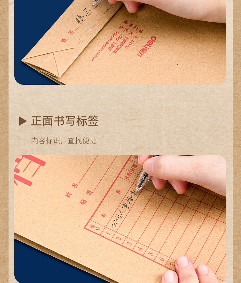 得力64103牛皮紙檔案袋(280g-4cm)(黃)(10個/包)