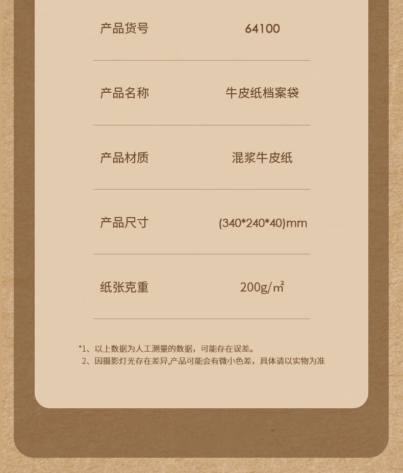 得力64101牛皮紙檔案袋(200g-6cm)(黃)(10個/包)