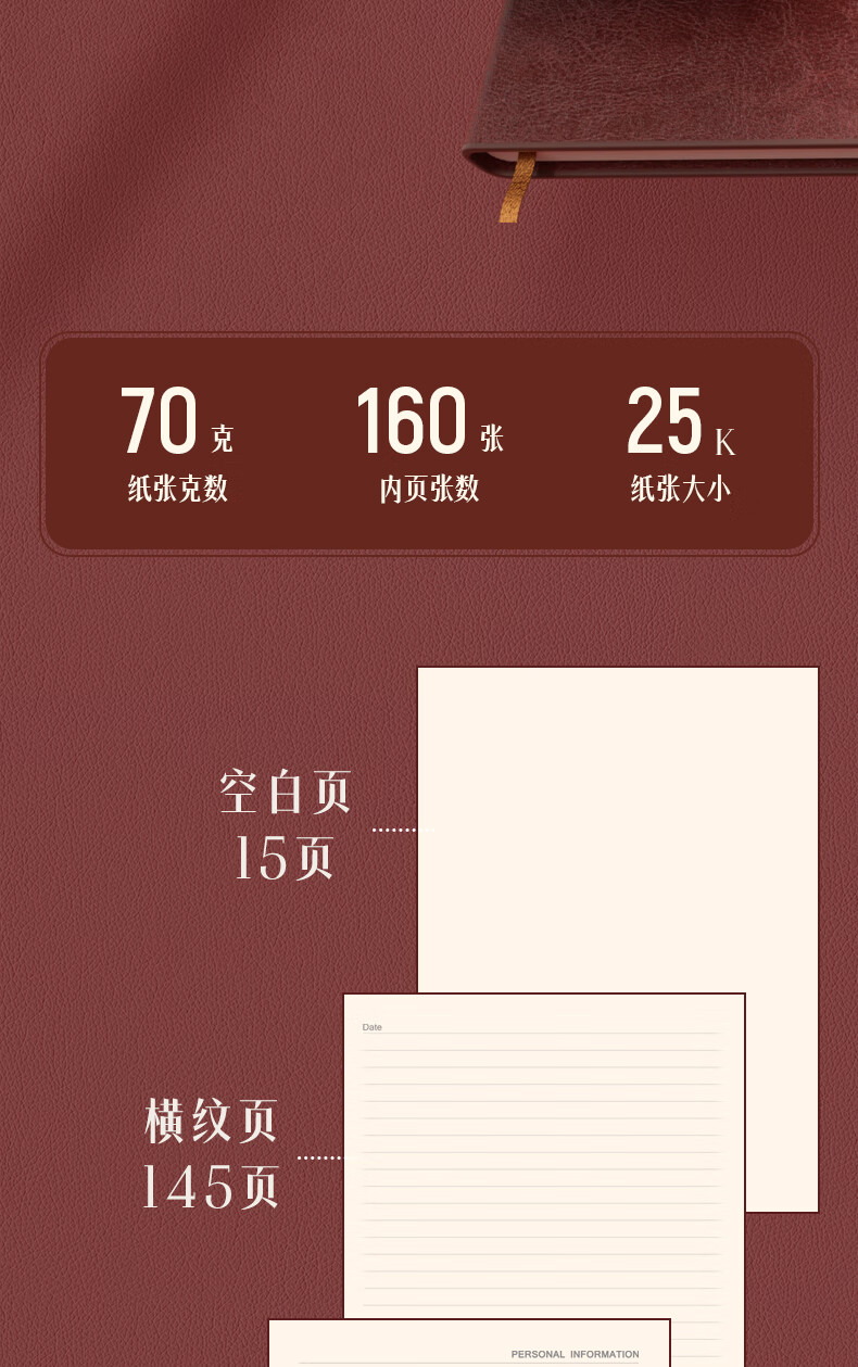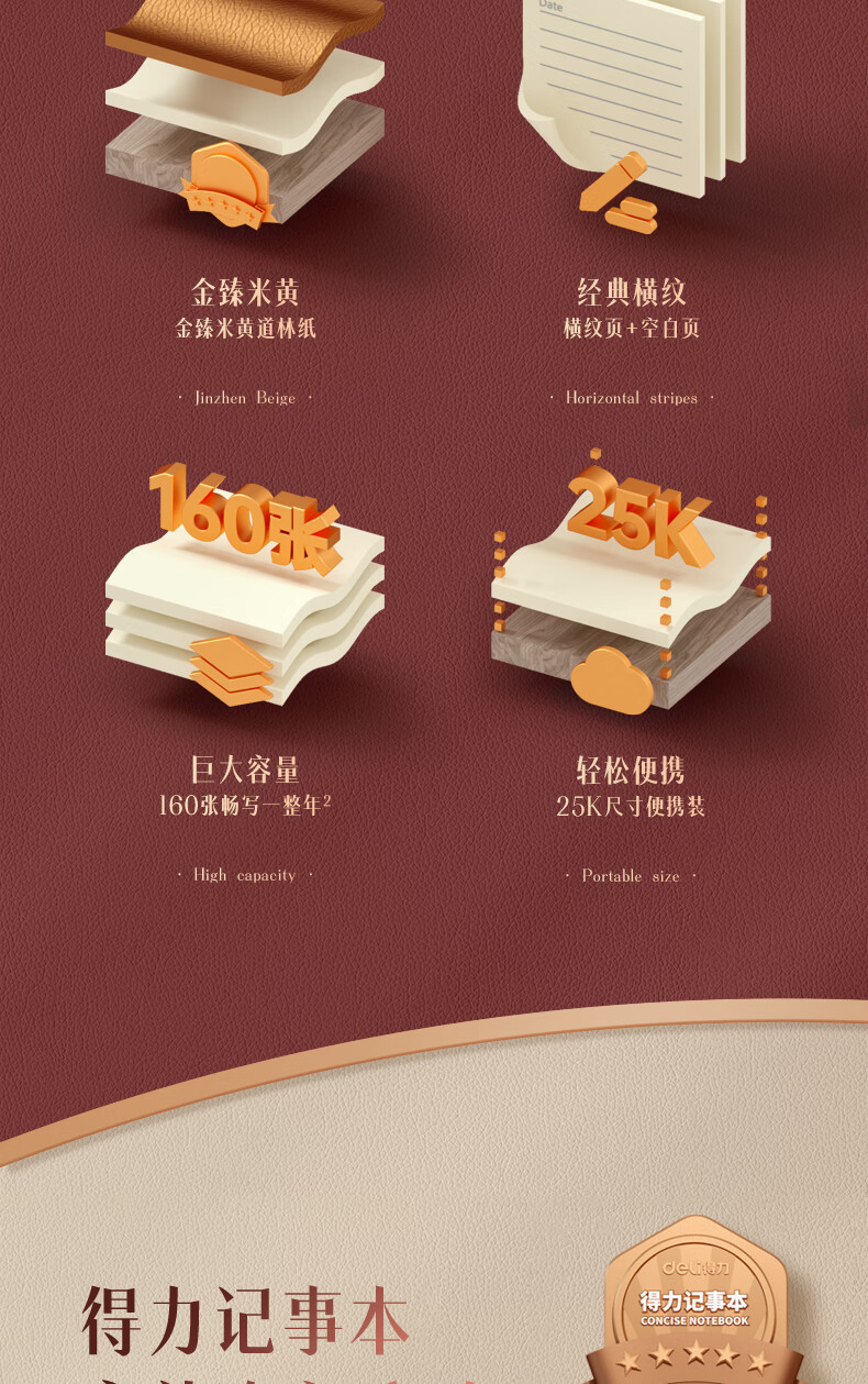 得力3186商務(wù)辦公筆記本(棕色)25K 160頁