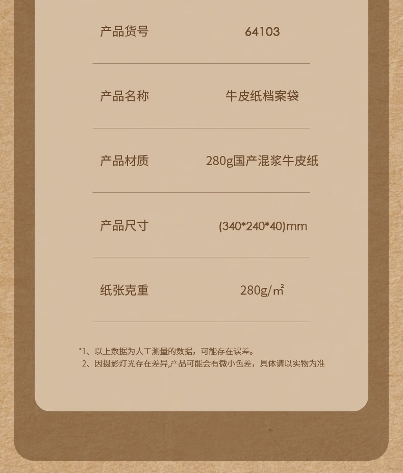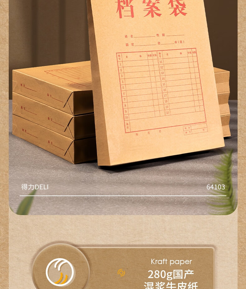 得力64103牛皮紙檔案袋(280g-4cm)(黃)(10個/包)