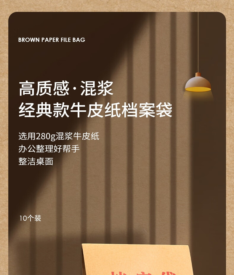 得力64104牛皮紙檔案袋(280g-6cm)(黃)(10個/包)