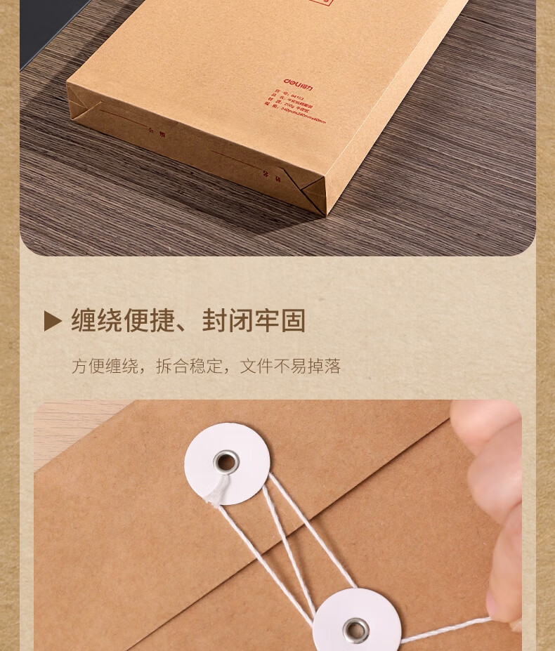 得力64100牛皮紙檔案袋(200g-4cm)(黃)(10個/包)