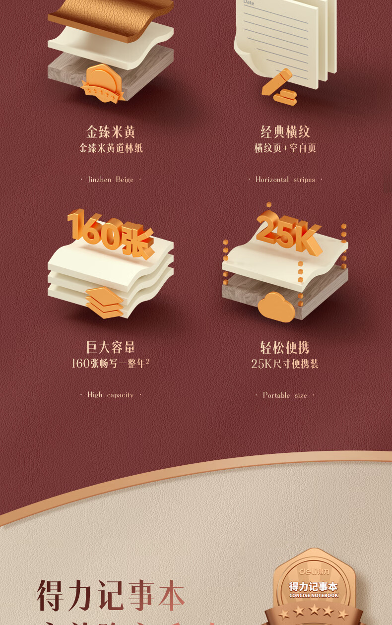 得力3186商務辦公筆記本(棕色)25K 160頁