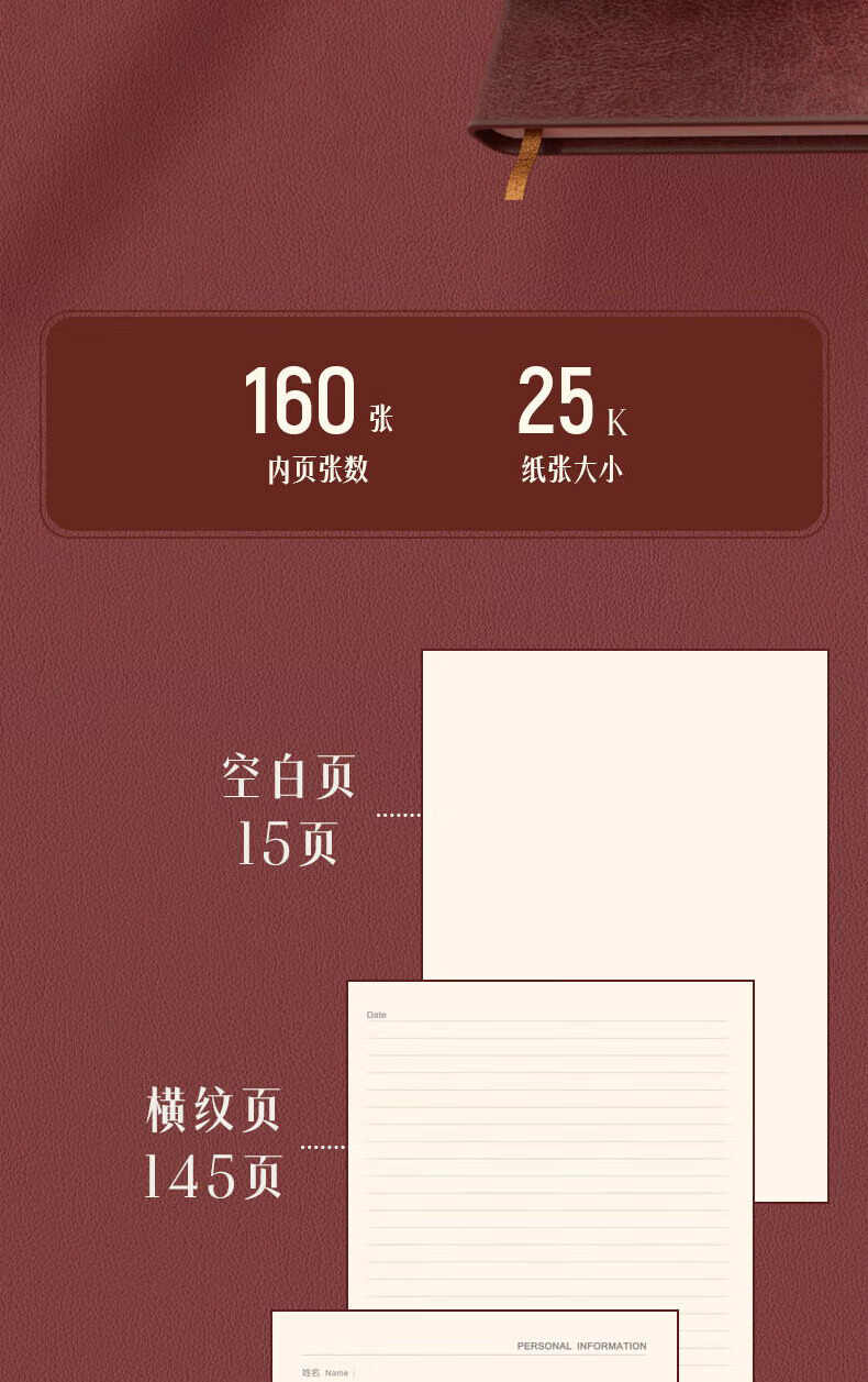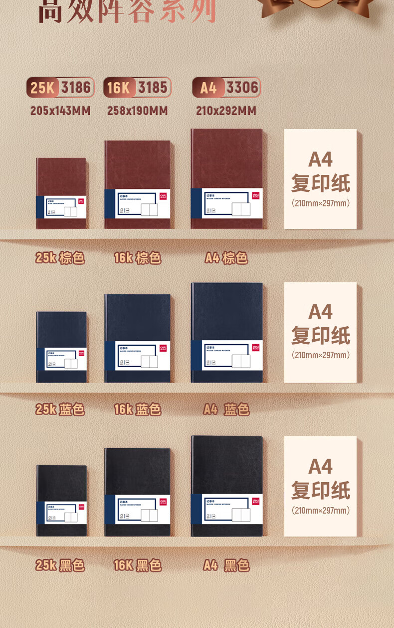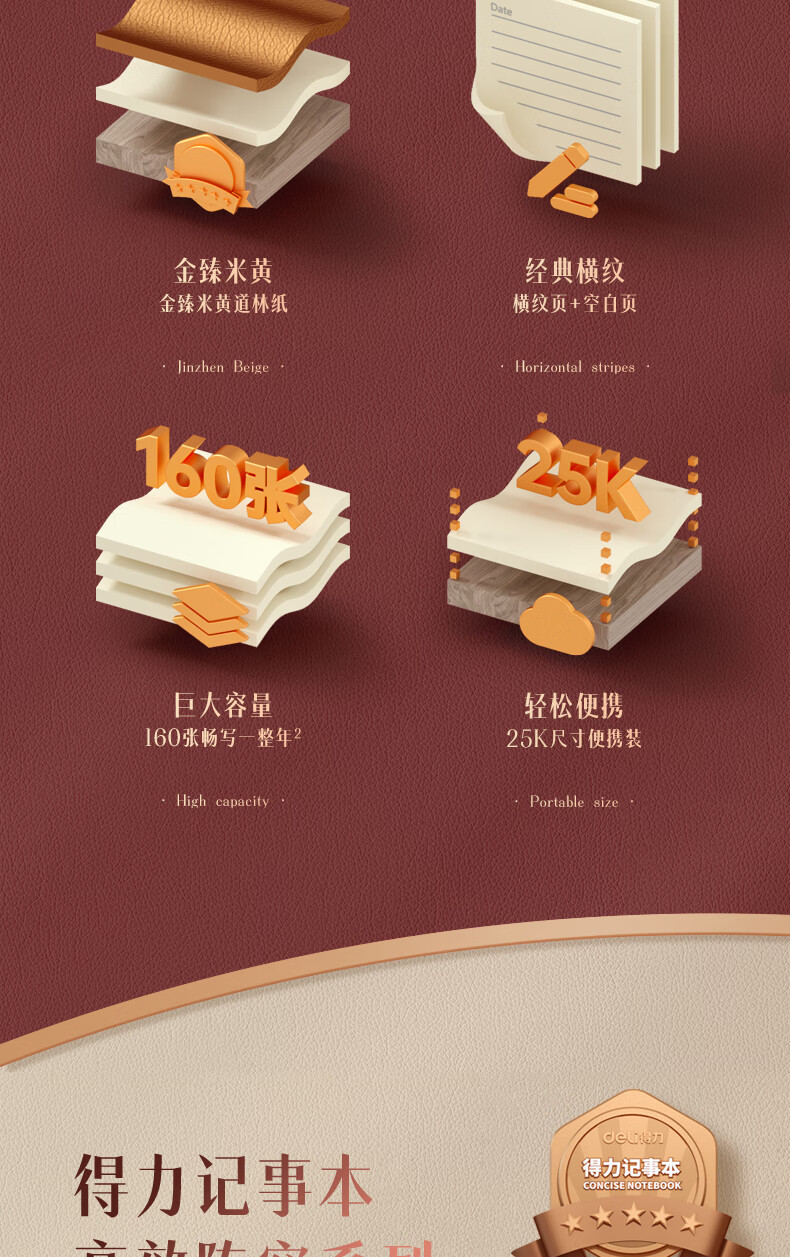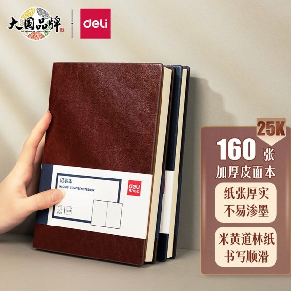 得力3186商務辦公筆記本(棕色)25K 160頁