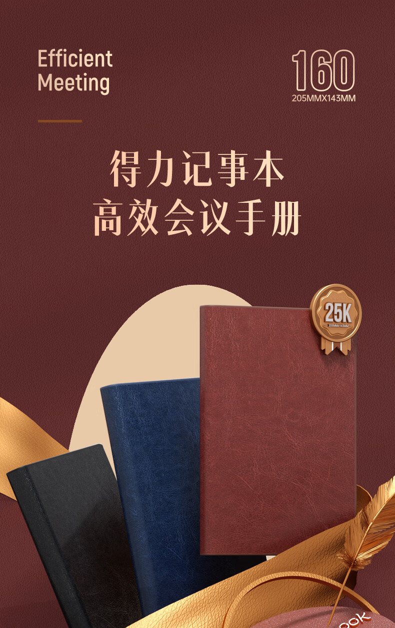 得力3186商務辦公筆記本(棕色)A5 160頁