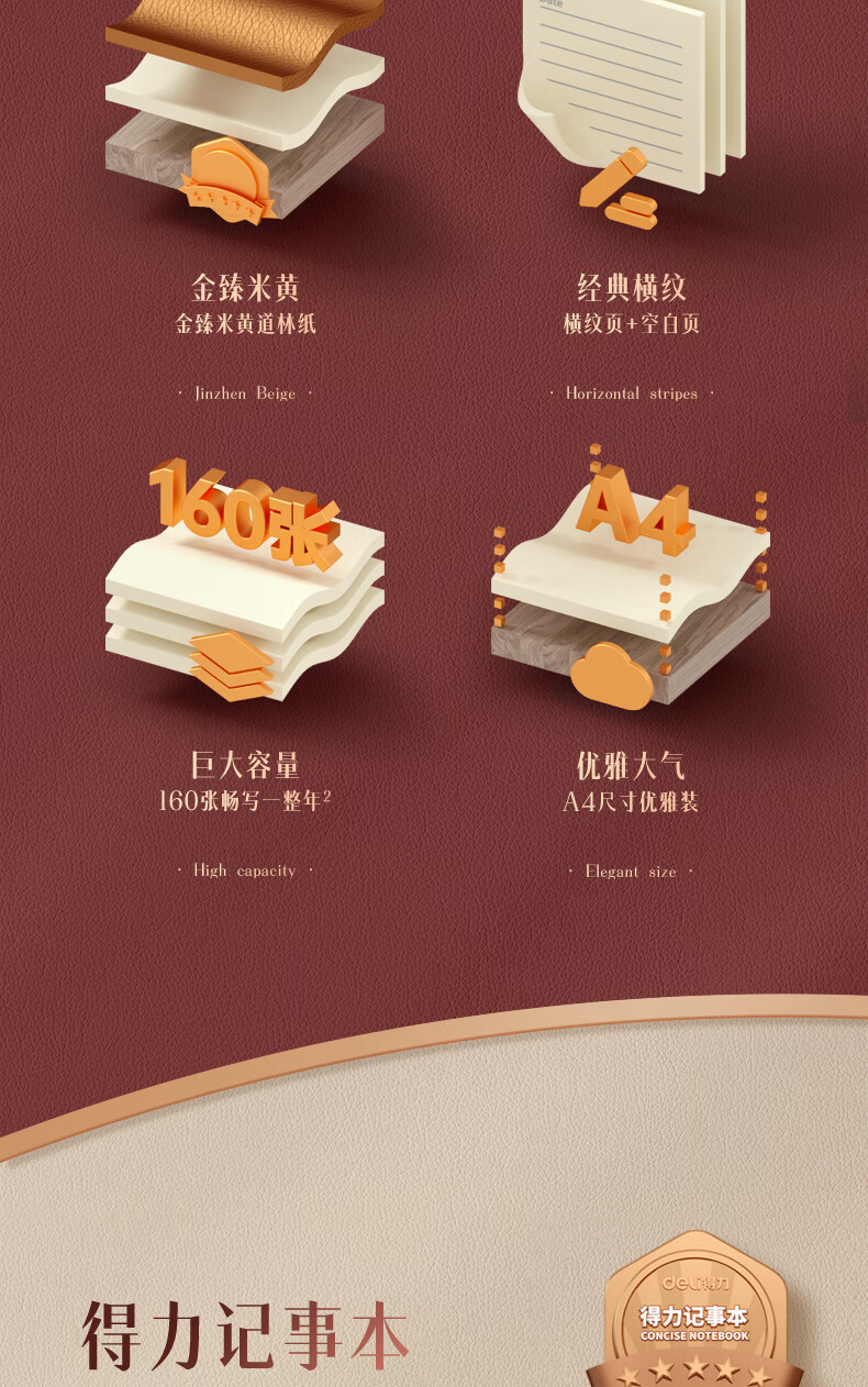 得力3186商務辦公筆記本(棕色)25K 160頁