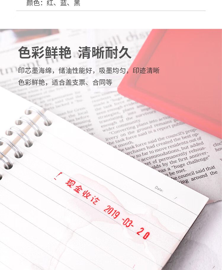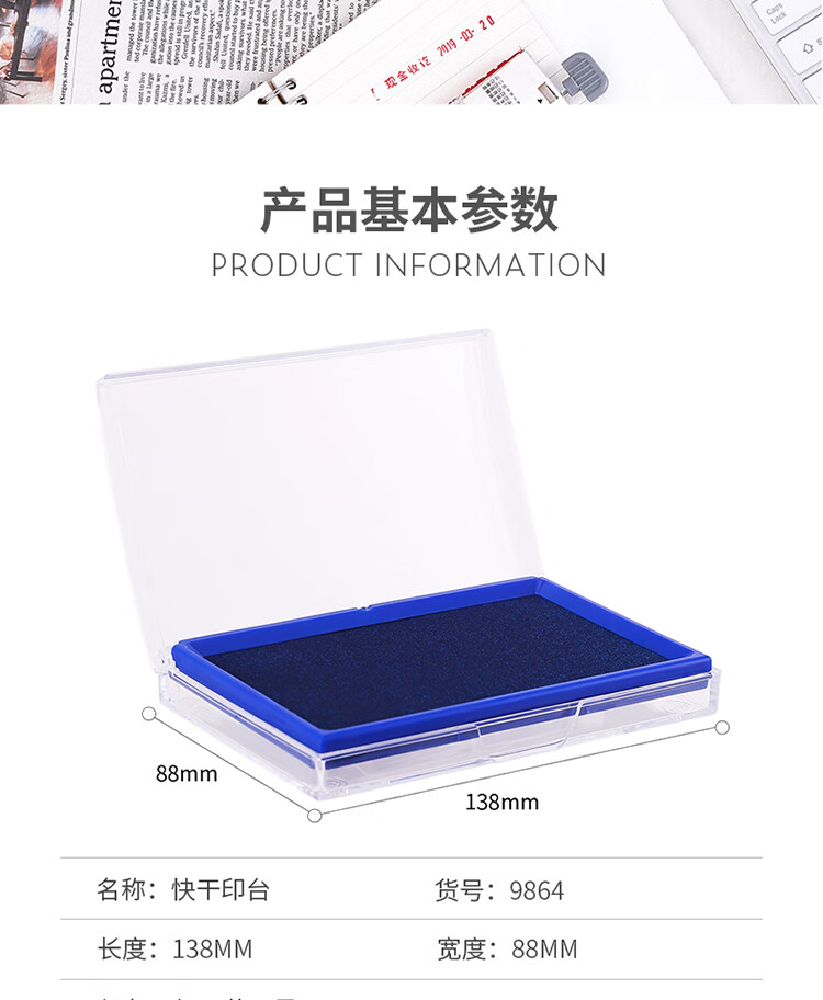 得力9893方形鐵蓋秒干印臺143x87mm(紅)