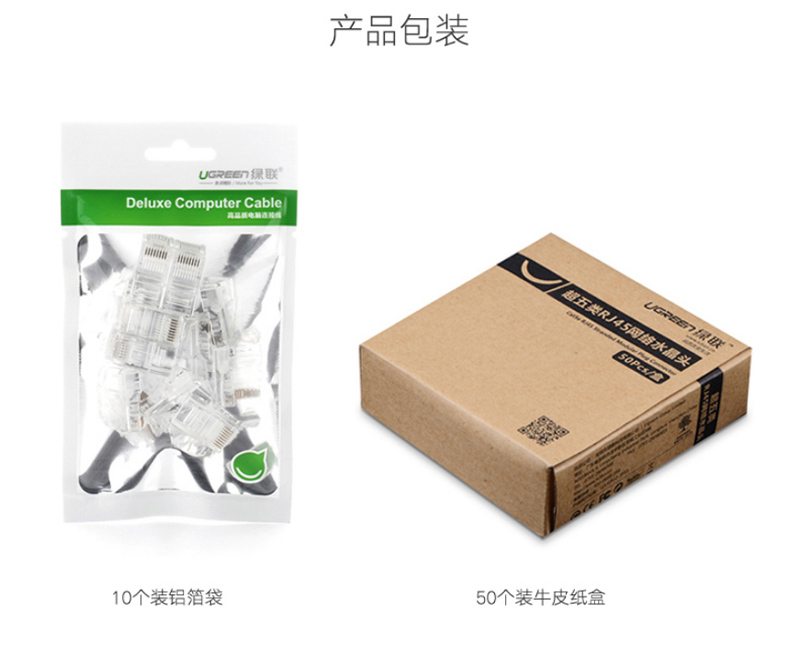 綠聯(lián)超五類RJ45水晶頭(50pcs)20331