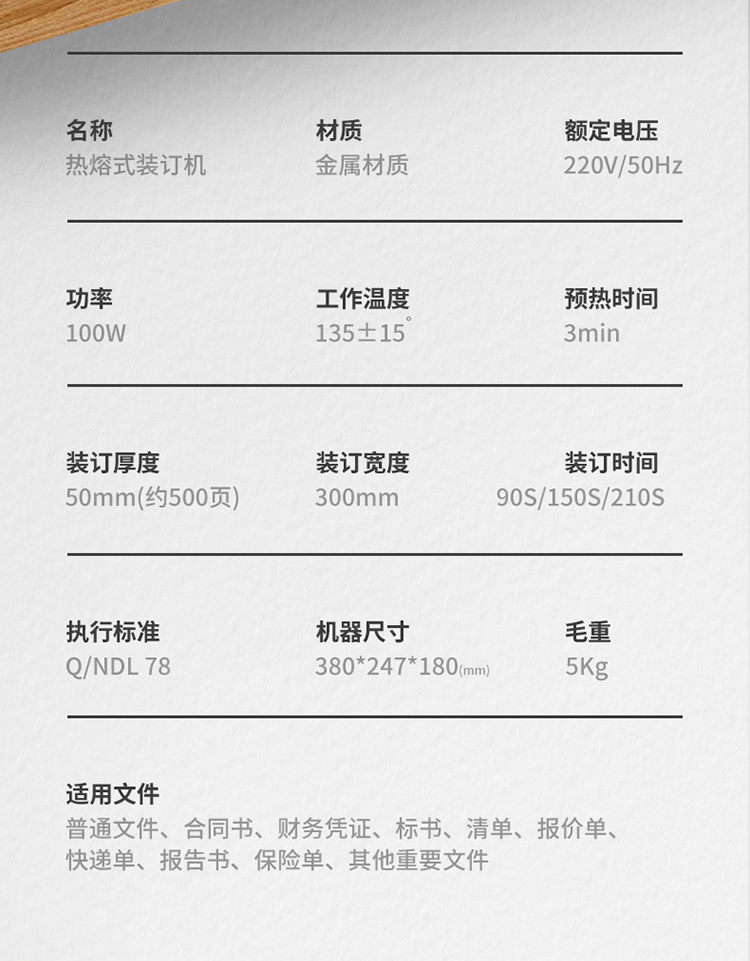 適用類型 : 得力3882熱熔裝訂機(jī)(灰)