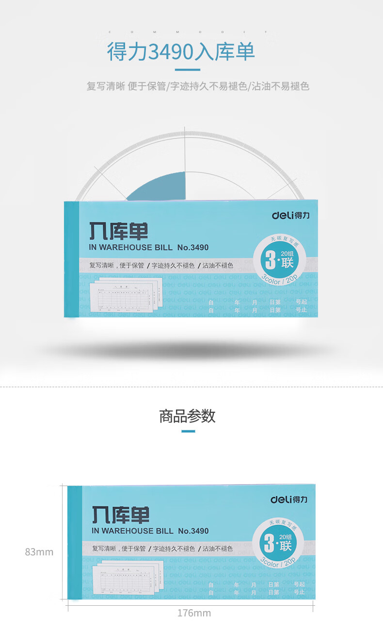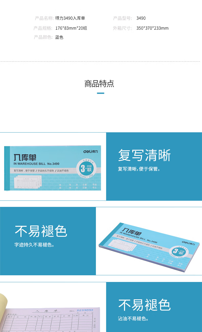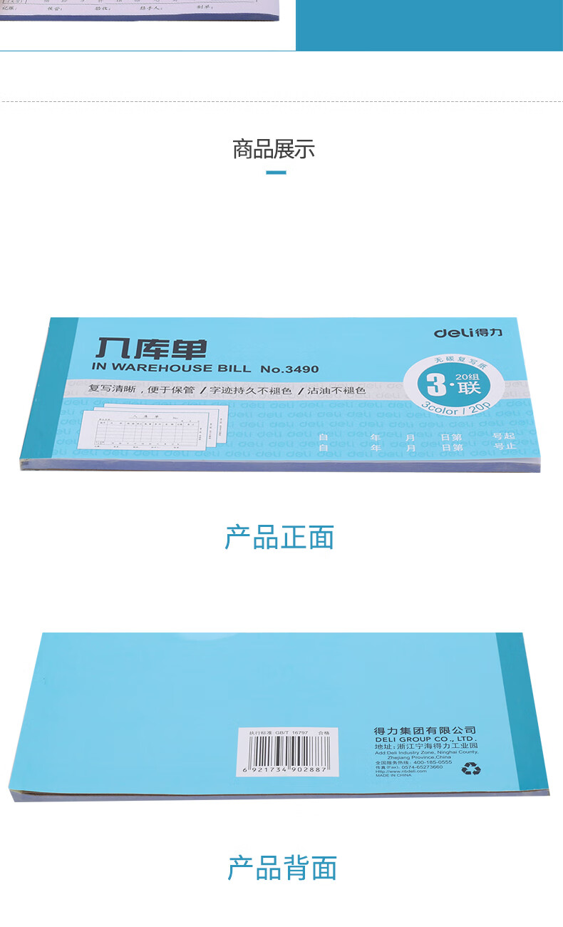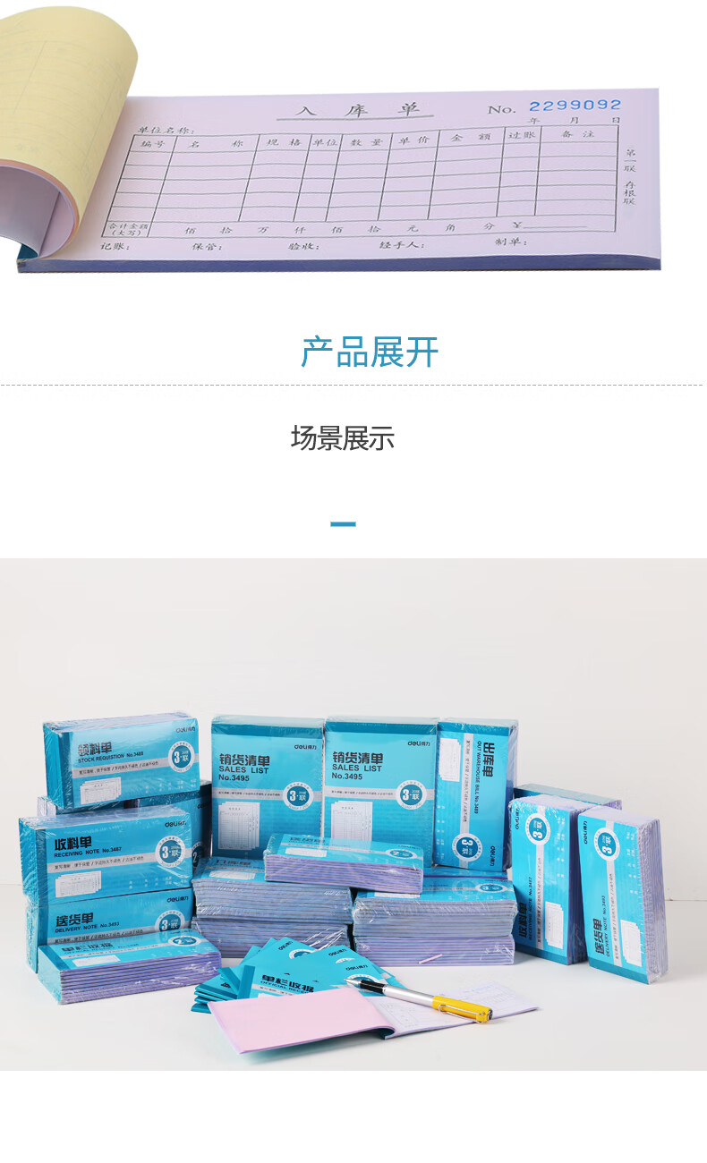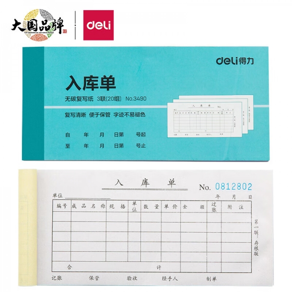 得力3490三聯(lián)入庫單 無碳復(fù)寫