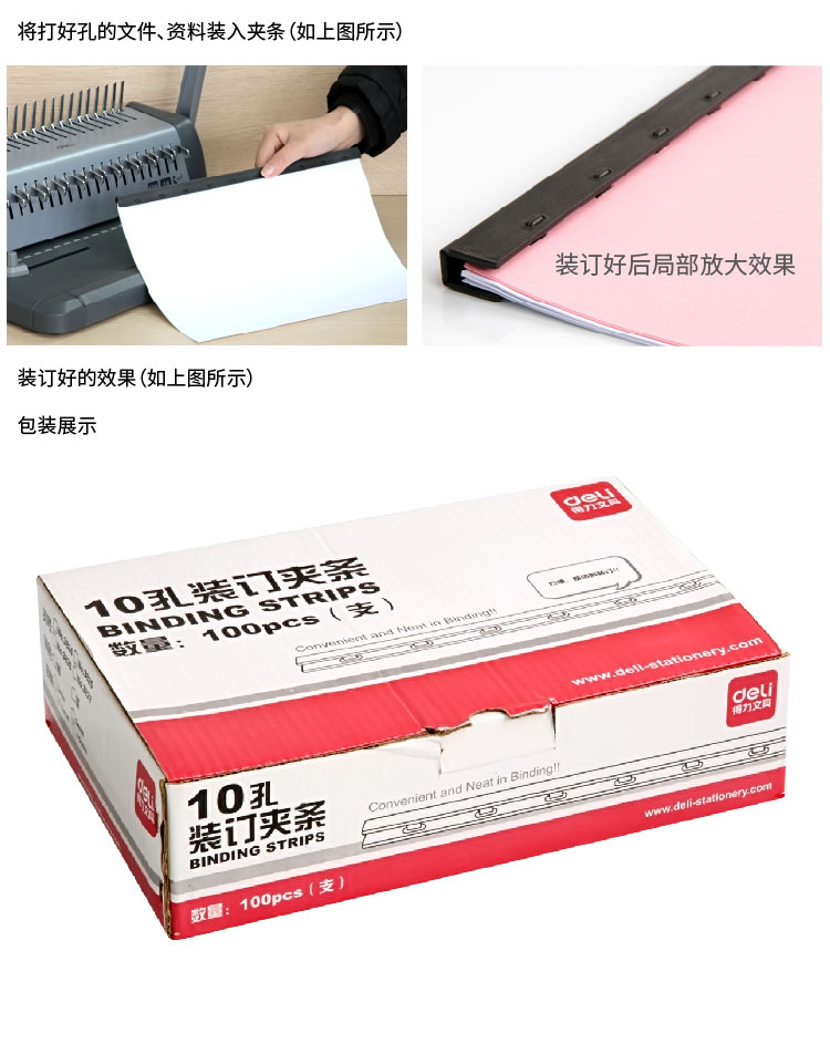 得力3826-10孔裝訂夾條300*7.5mm*100支