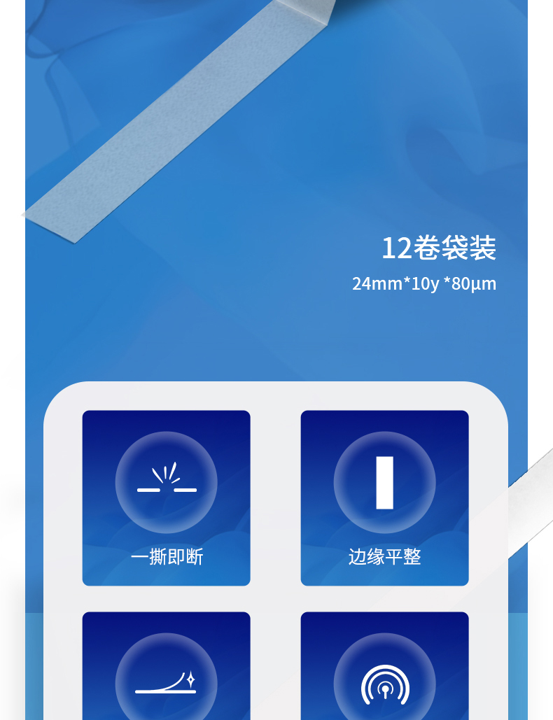 得力30403棉紙雙面膠帶24mm*10y*80um*12卷/袋