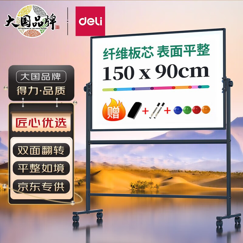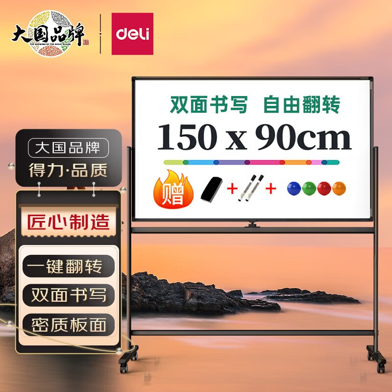 得力8739-H型架磁性玻璃白板1800*900mm(黑色)