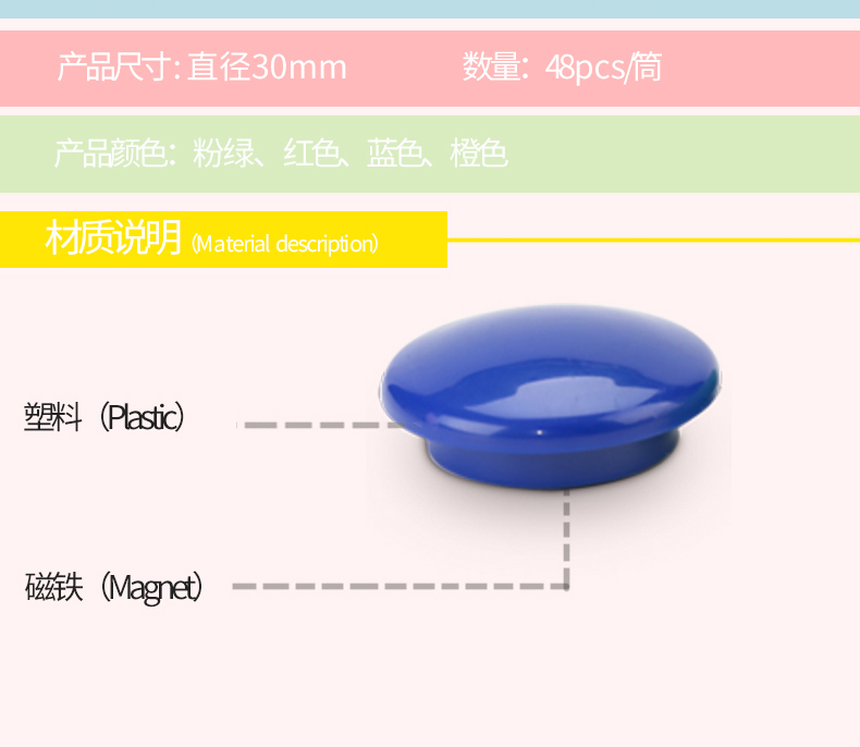 得力8725磁釘30mm*48粒/筒
