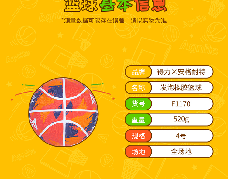 安格耐特F1170_4號(hào)發(fā)泡橡膠籃球(紅色)