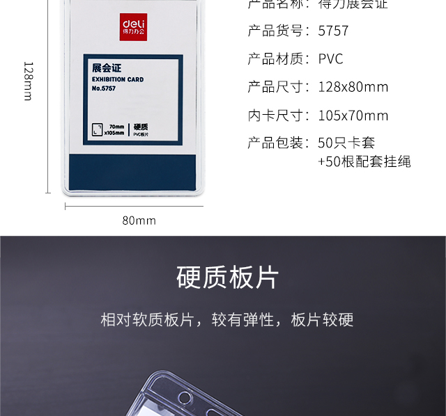 得力5752證件卡(藍)(50只/盒)