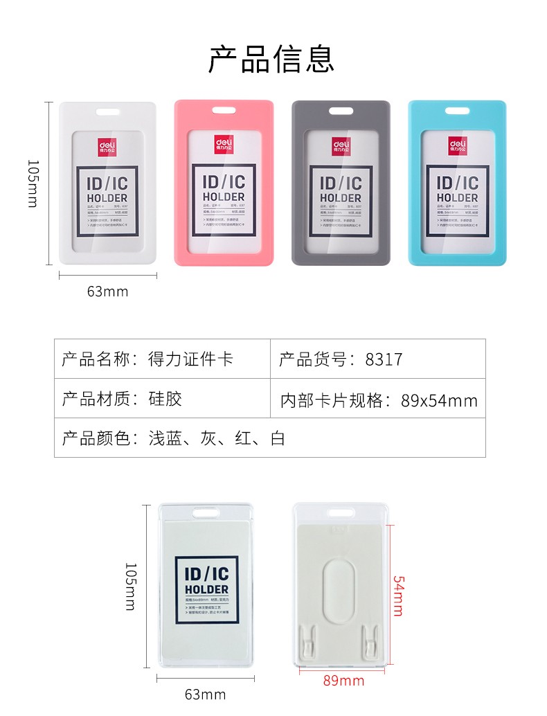 得力PZ02軟質(zhì)PVC證件卡-豎款(透明)(48個/盒)