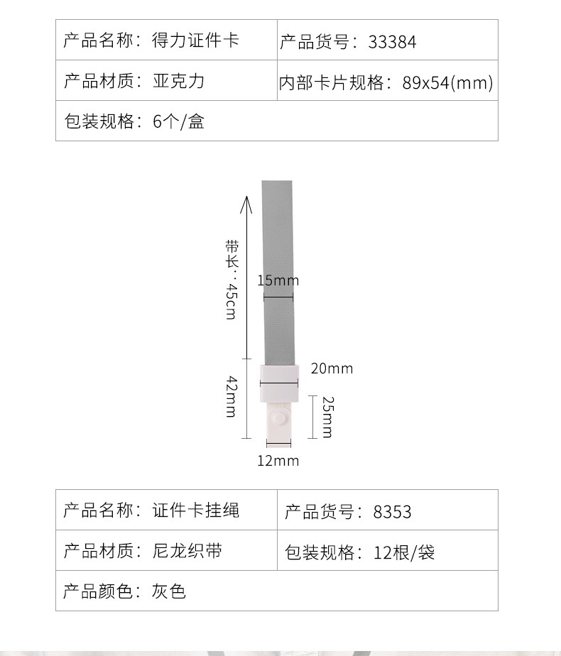 得力8353證件卡掛繩(淺藍(lán))(12根/包)