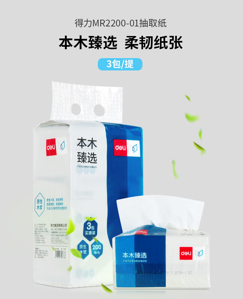 得力CC1200-02本木臻選擦手紙單層200抽*20