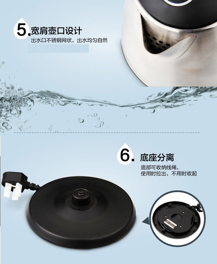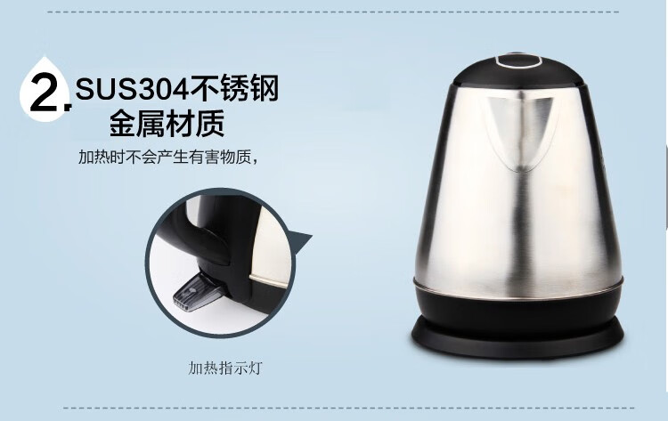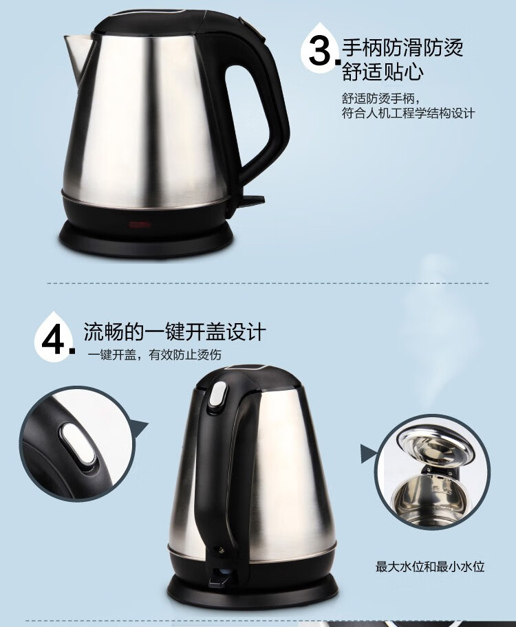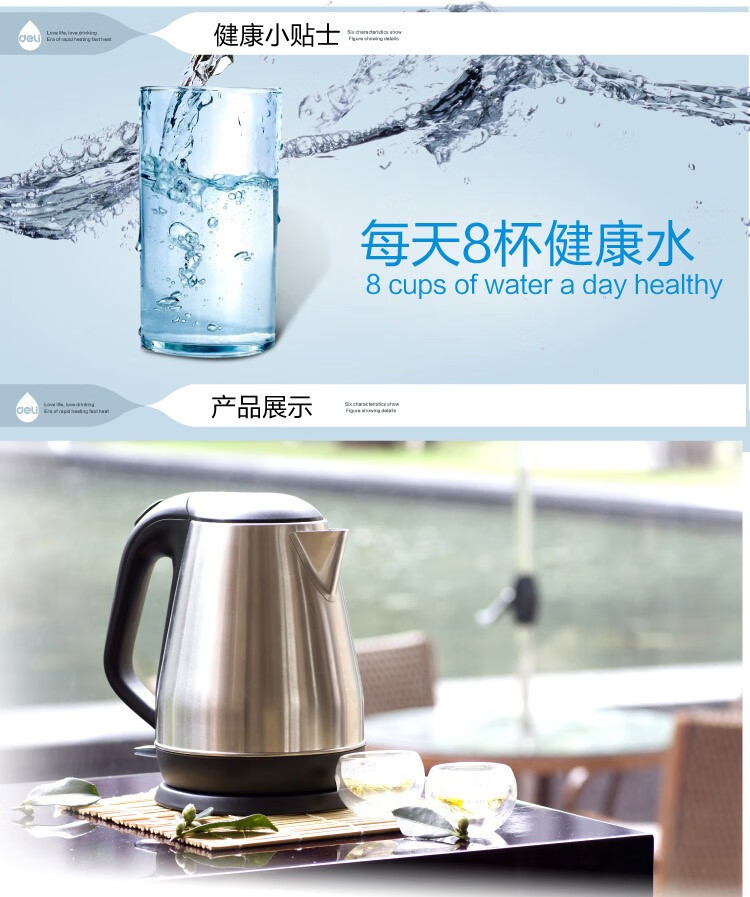 得力0764電熱水壺1.8L(灰白)單層不銹鋼