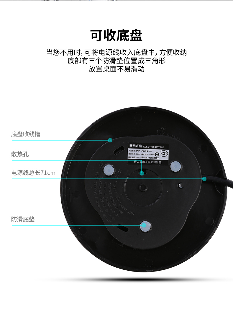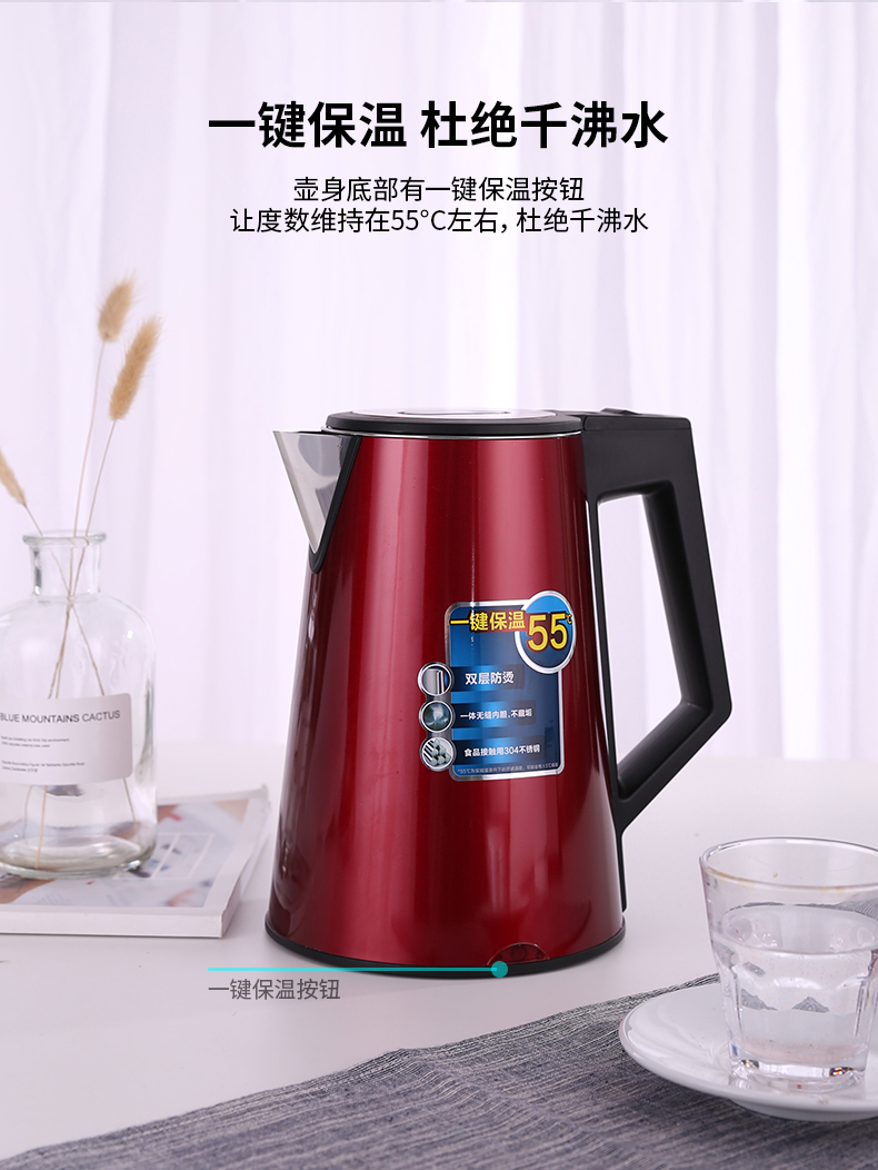 得力0767電熱水壺(香檳金)雙層不銹鋼1.7L