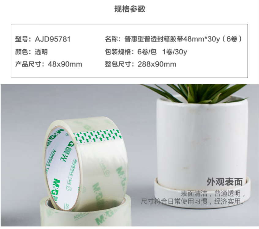晨光普惠高透封箱膠帶48mm*30y*6卷AJD95793