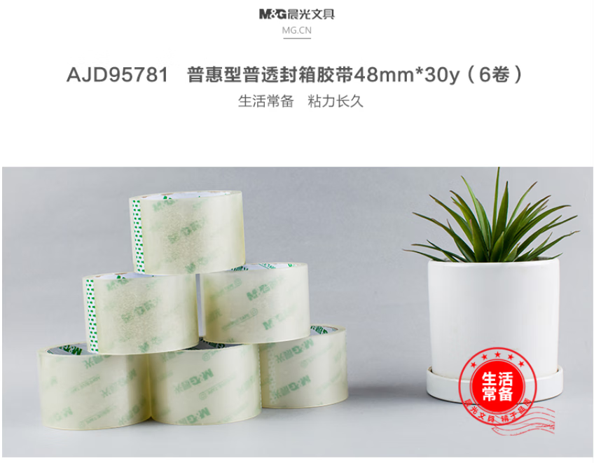 晨光普惠普透封箱膠帶48mm*100y*6卷AJD95784