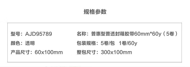 晨光普惠高透封箱膠帶60mm*60y*5卷AJDN7502